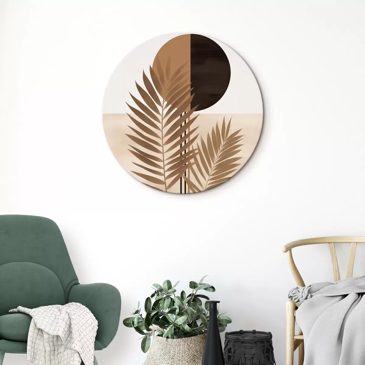 Quadri rotondi Due foglie di palma con motivo a forma di sole con cerchio diviso r46491