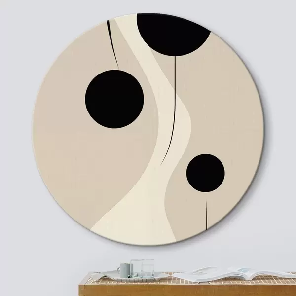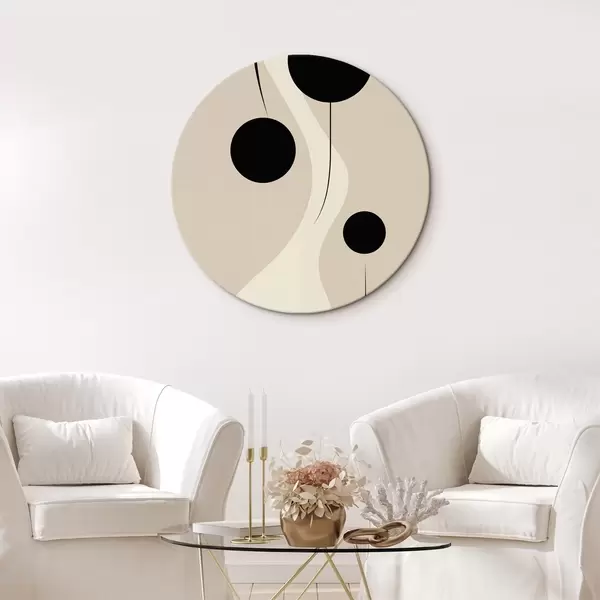 Quadri rotondi Cerchi minimalisti su sfondo beige con accenti di linee fluide r46496
