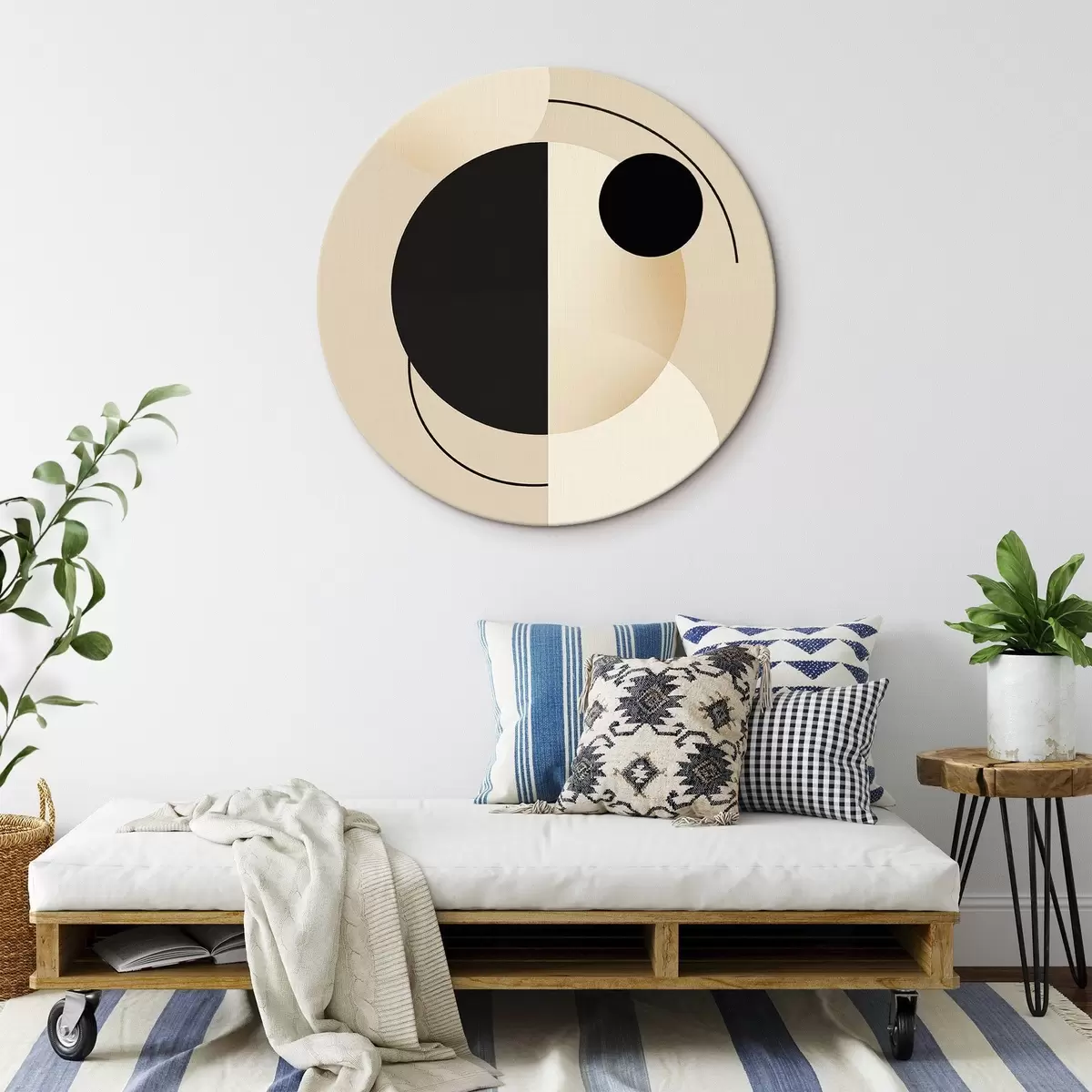 Quadri rotondi Cerchi e archi grafici in morbido beige e nero r46497