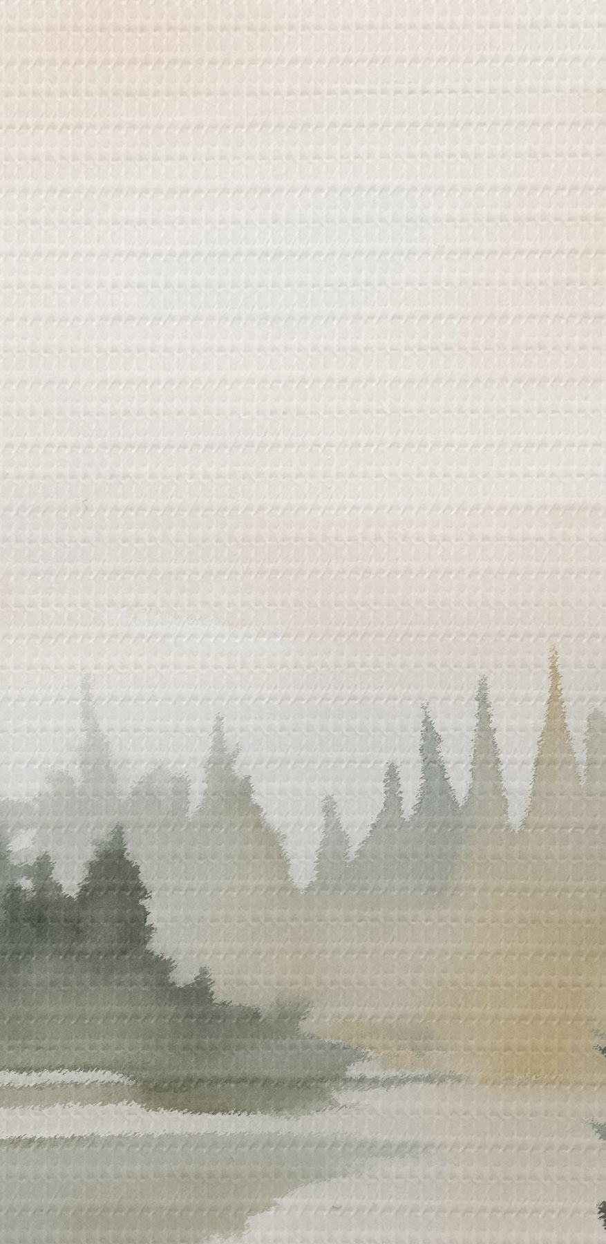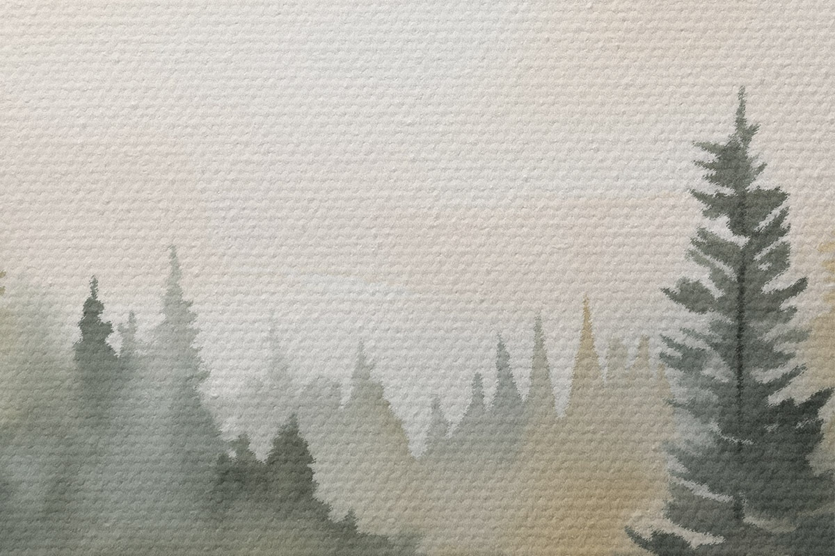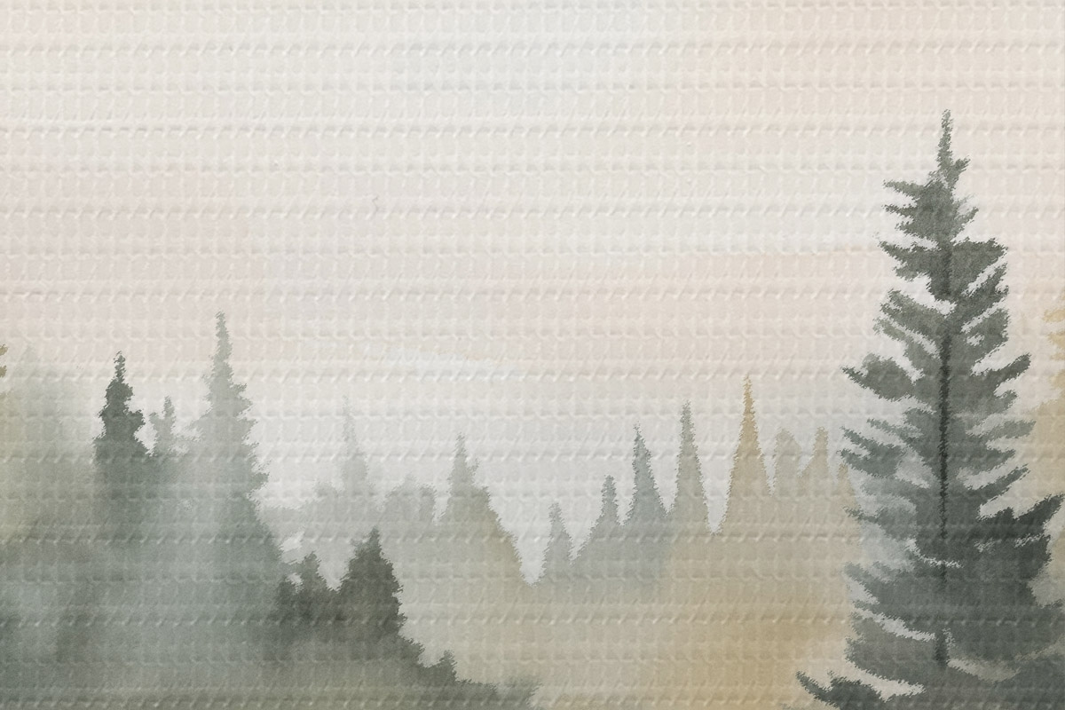 Immagine Bosco di conifere nebbioso su un fiume tranquillo, stile acquerello Nr r46507