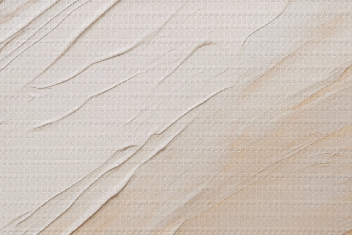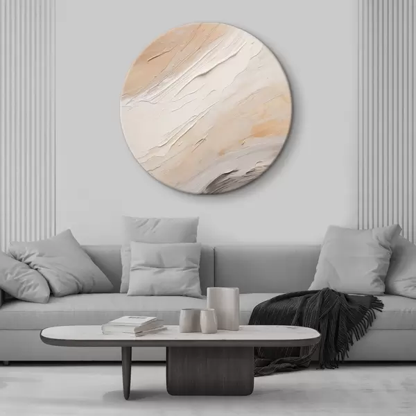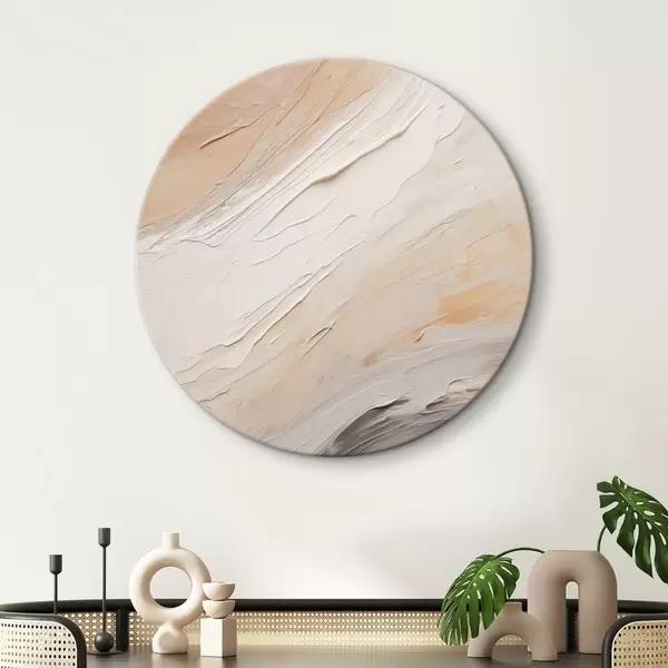 Quadri rotondi Intonaco strutturato con volute in beige caldo e grigio tenue r46511