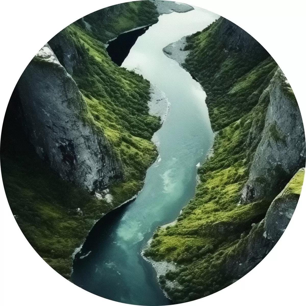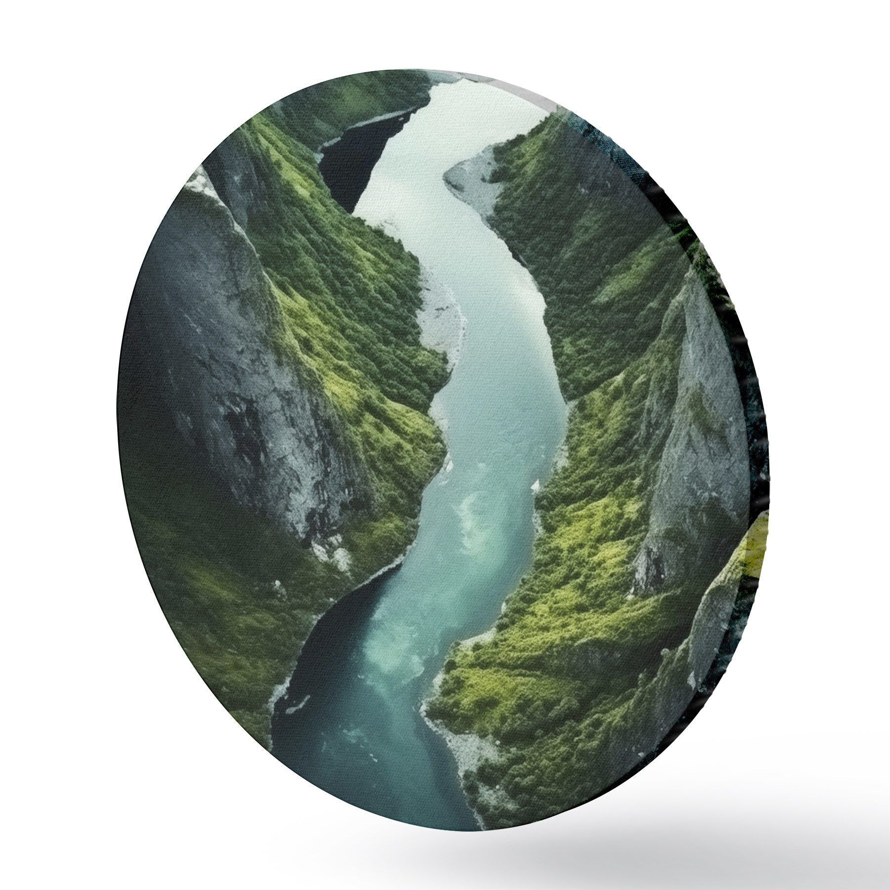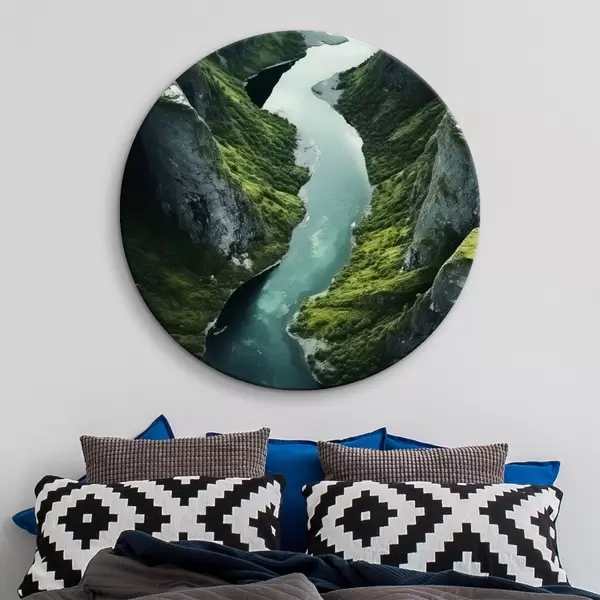 Quadri rotondi Fiume serpeggiante tra le scogliere, vista aerea r46521