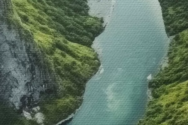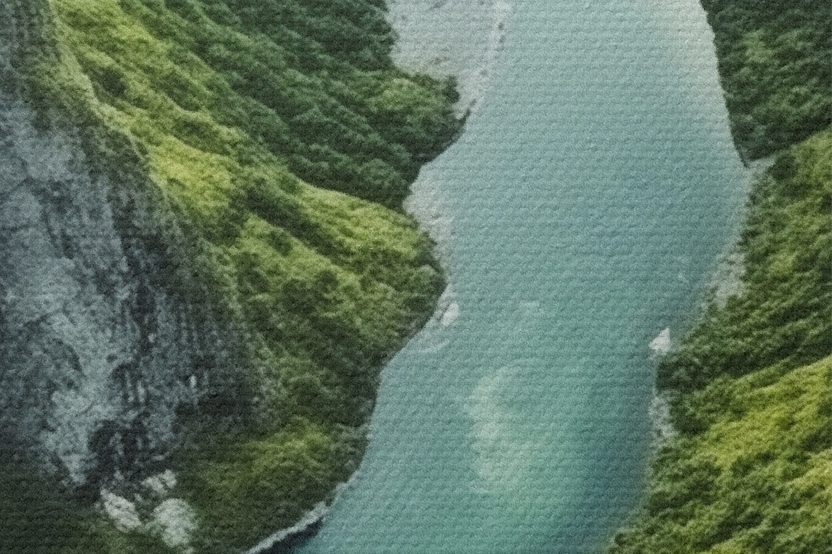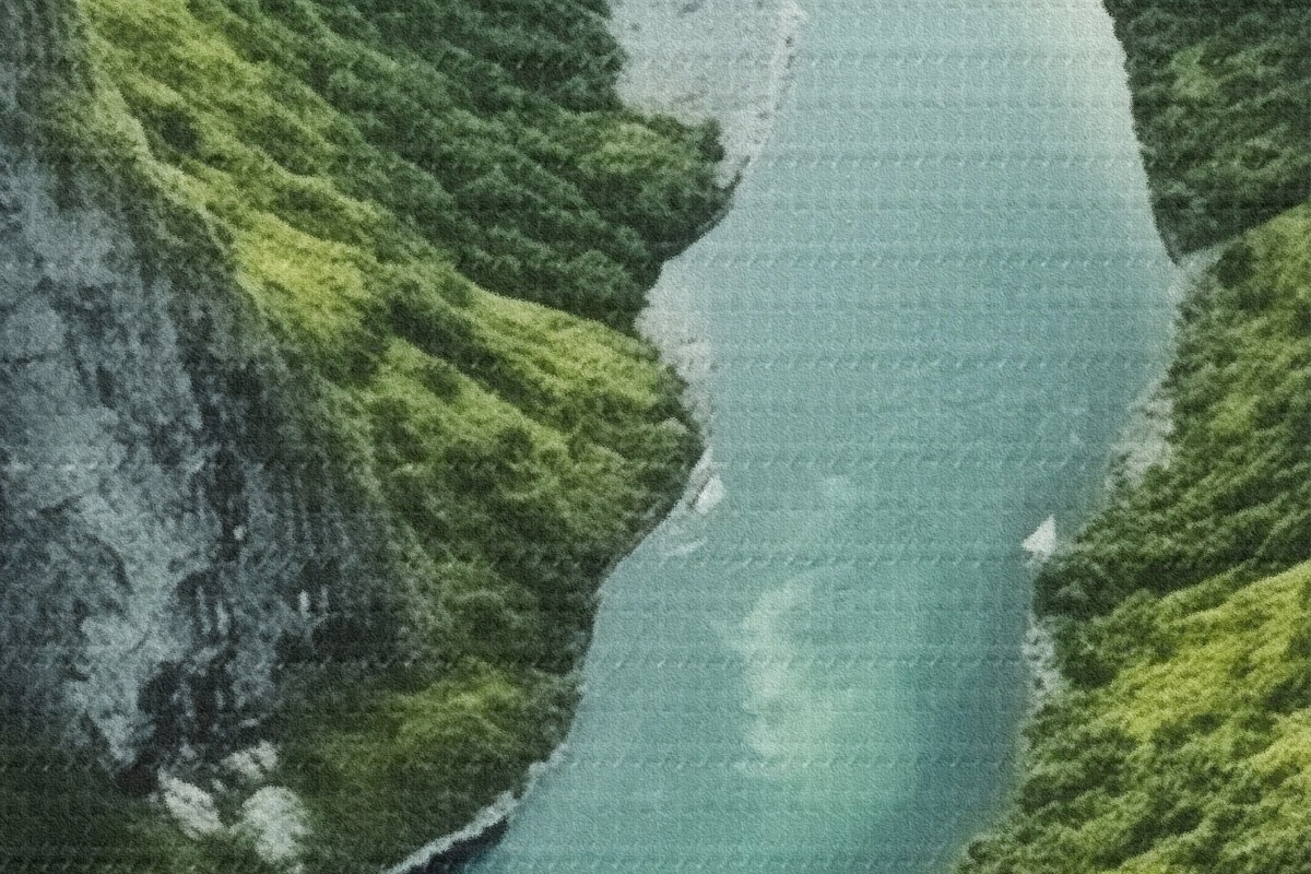 Immagine Fiume serpeggiante tra le scogliere, vista aerea Nr r46521
