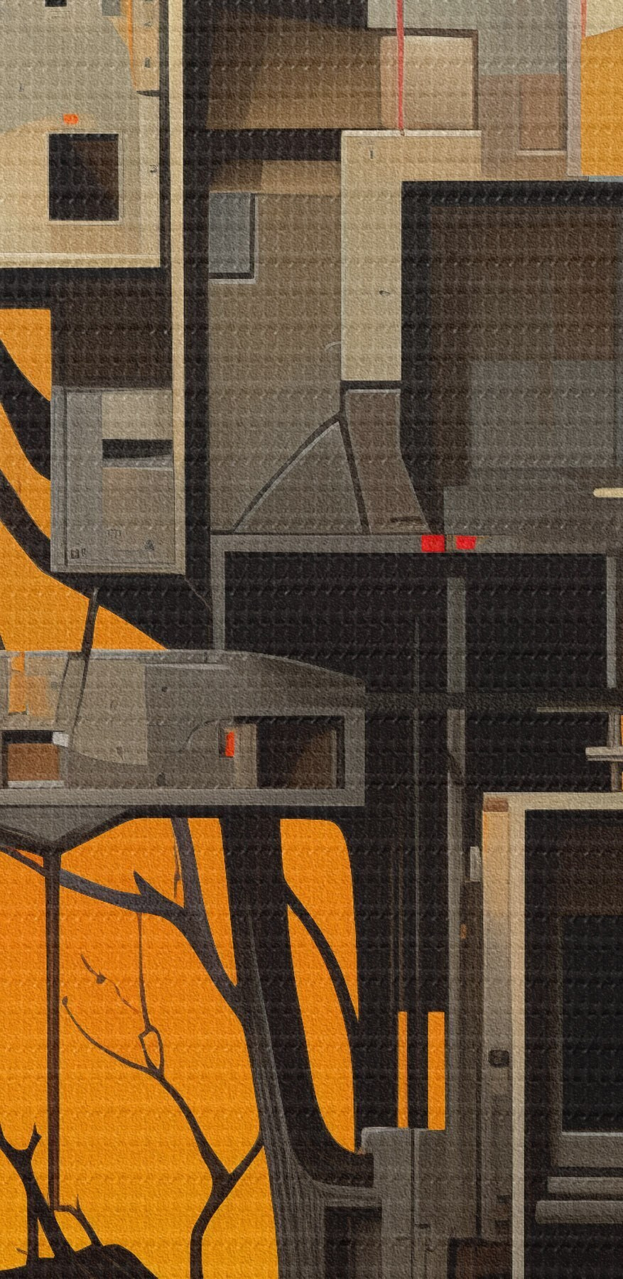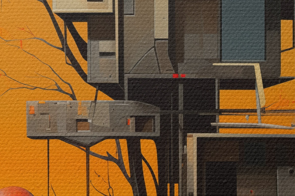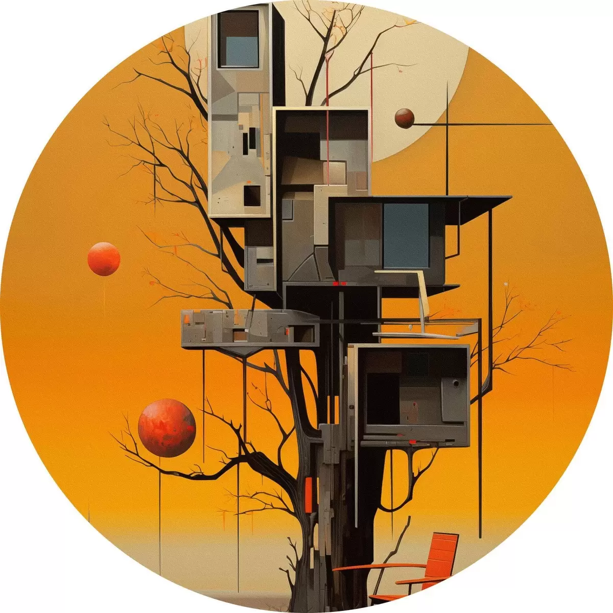 Immagine Surreale casa sull'albero su sfondo arancione Nr r46526