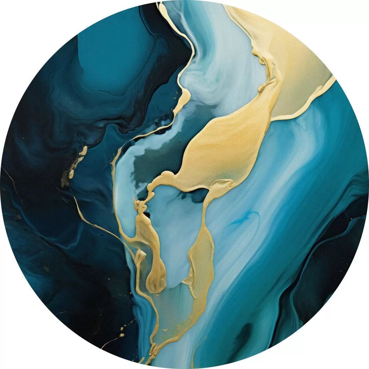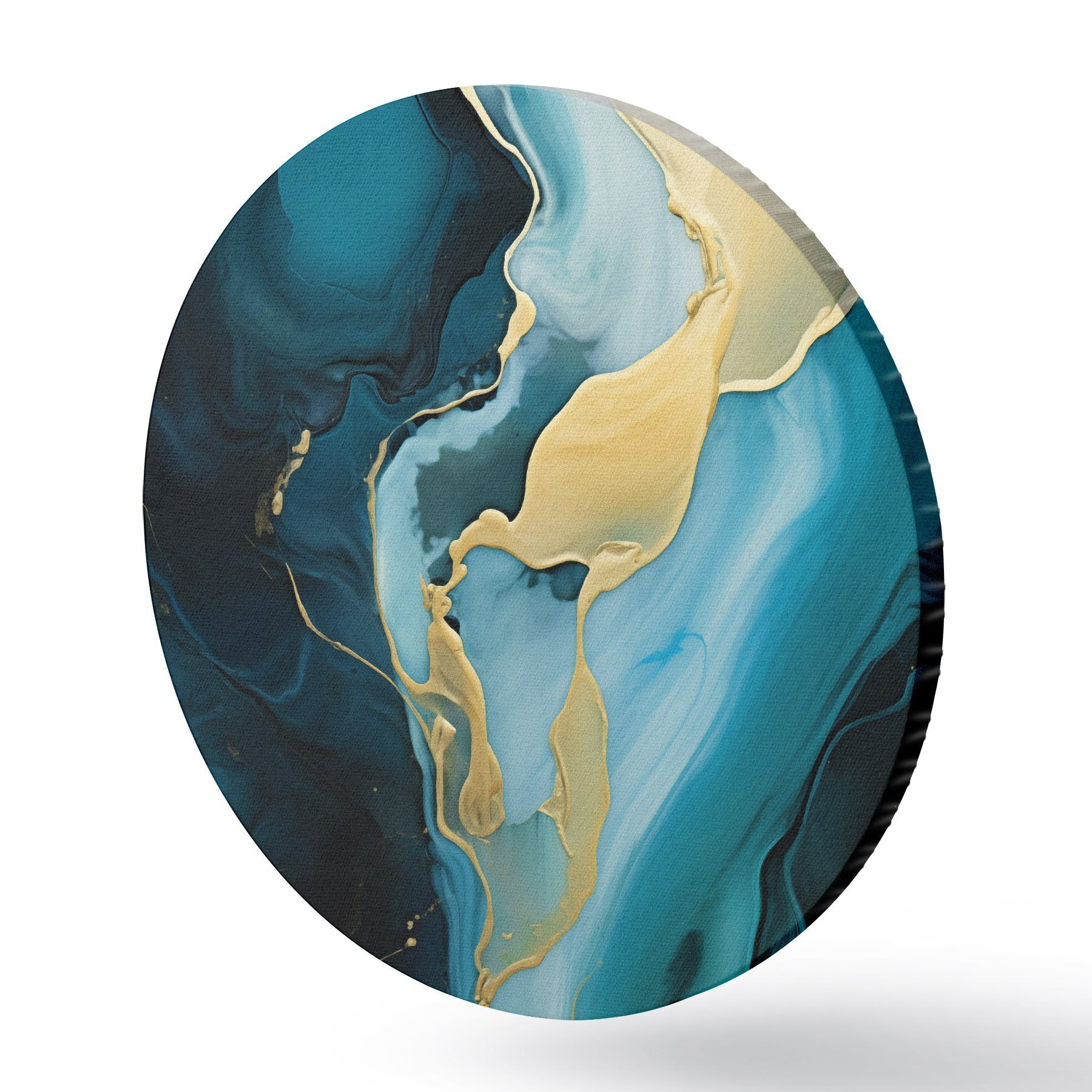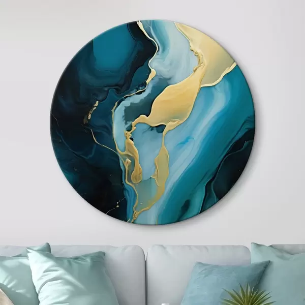 Quadri rotondi Astratto blu verde acqua con un tocco di ocra r46530