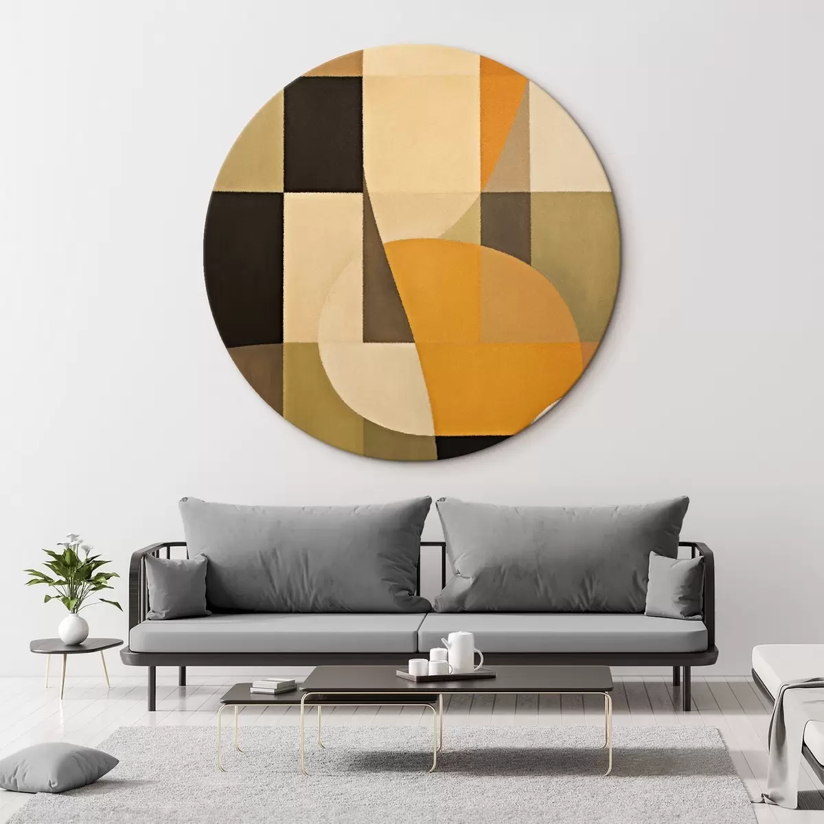 Quadri rotondi Patchwork di rettangoli con un arco arancione liscio r46534