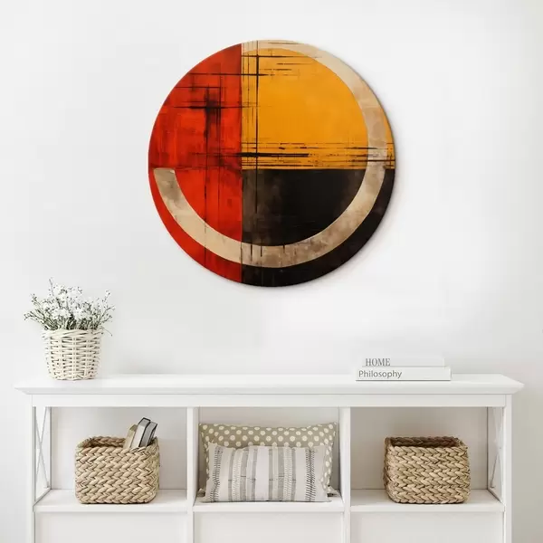 Quadri rotondi Cerchio astratto su sfondo rosso-nero con linee r46535