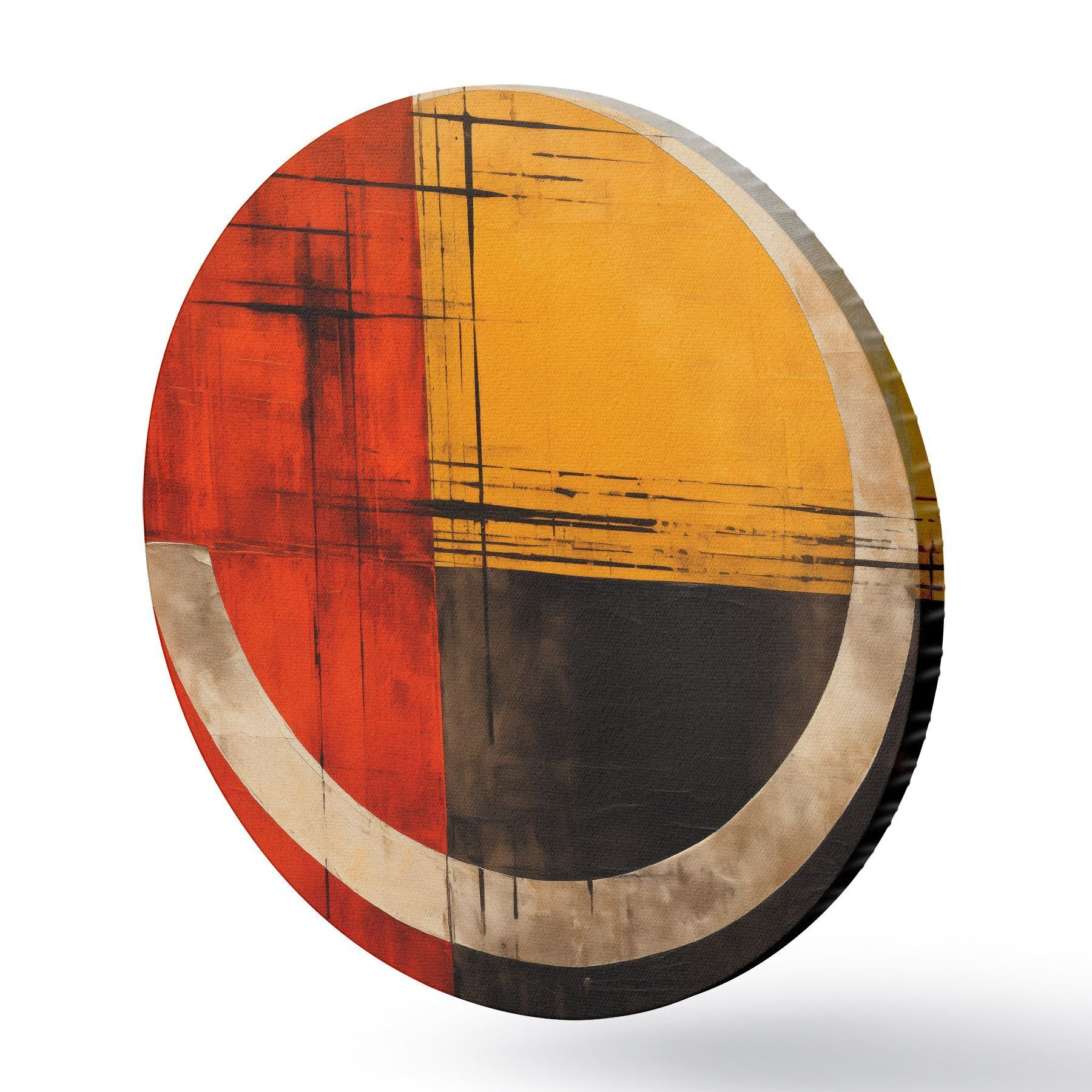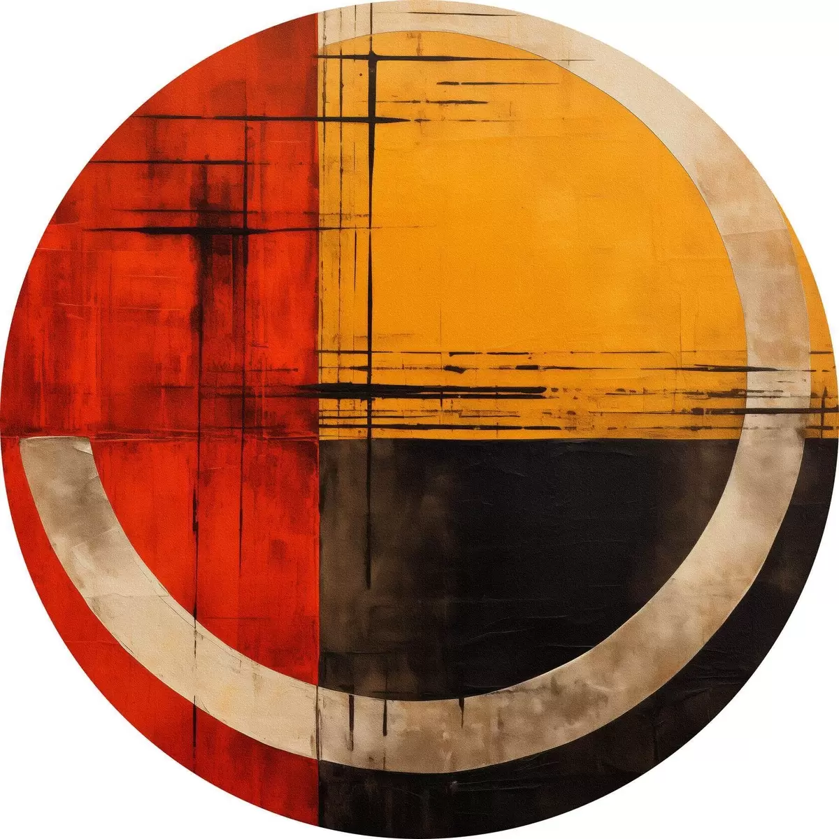 Quadri rotondi Cerchio astratto su sfondo rosso-nero con linee r46535