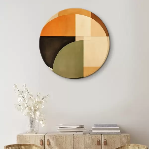 Quadri rotondi Cerchi intersecanti in una tavolozza di colori sabbia-oliva r46537