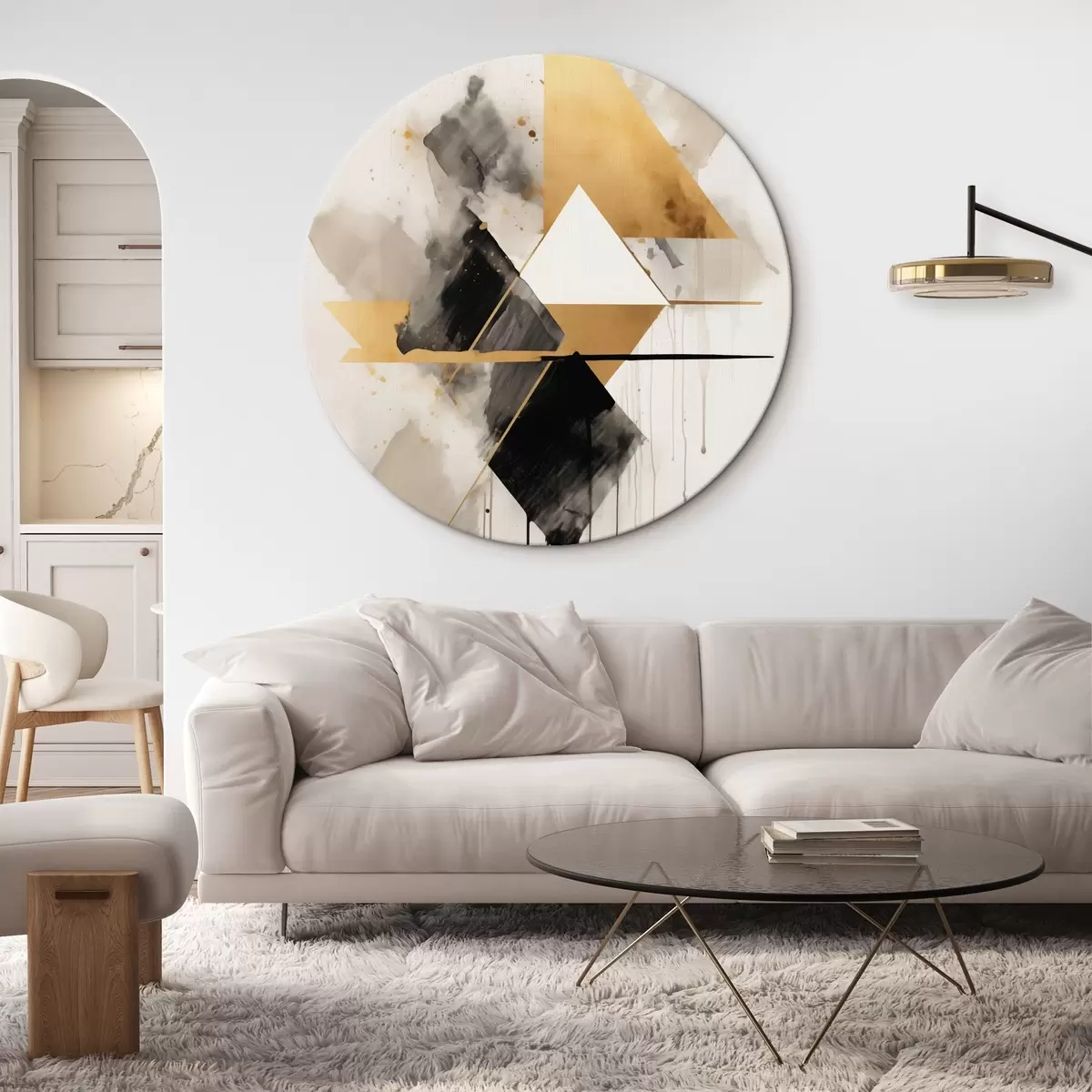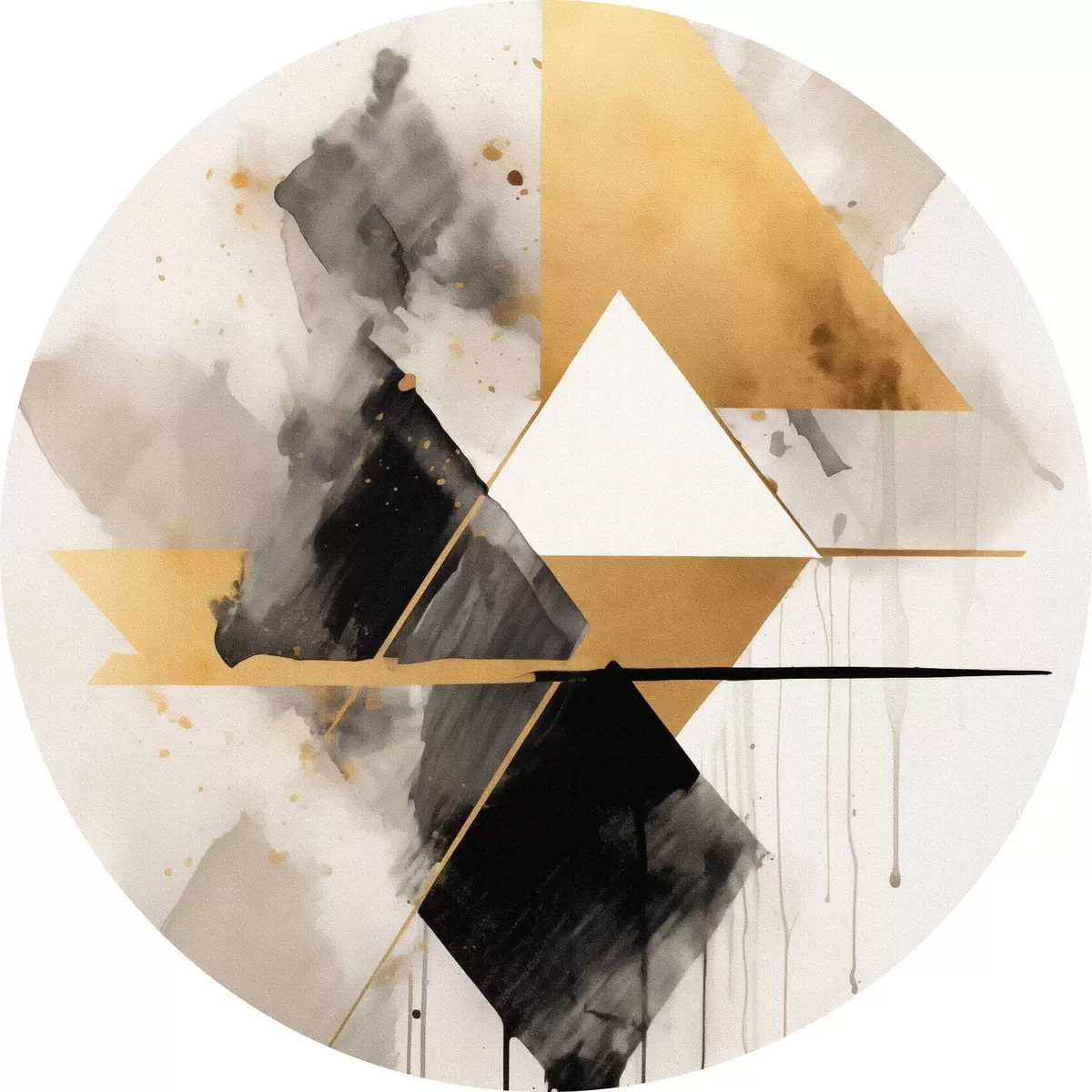 Quadri rotondi Geometria con triangoli e un rombo nero, tratti beige r46539
