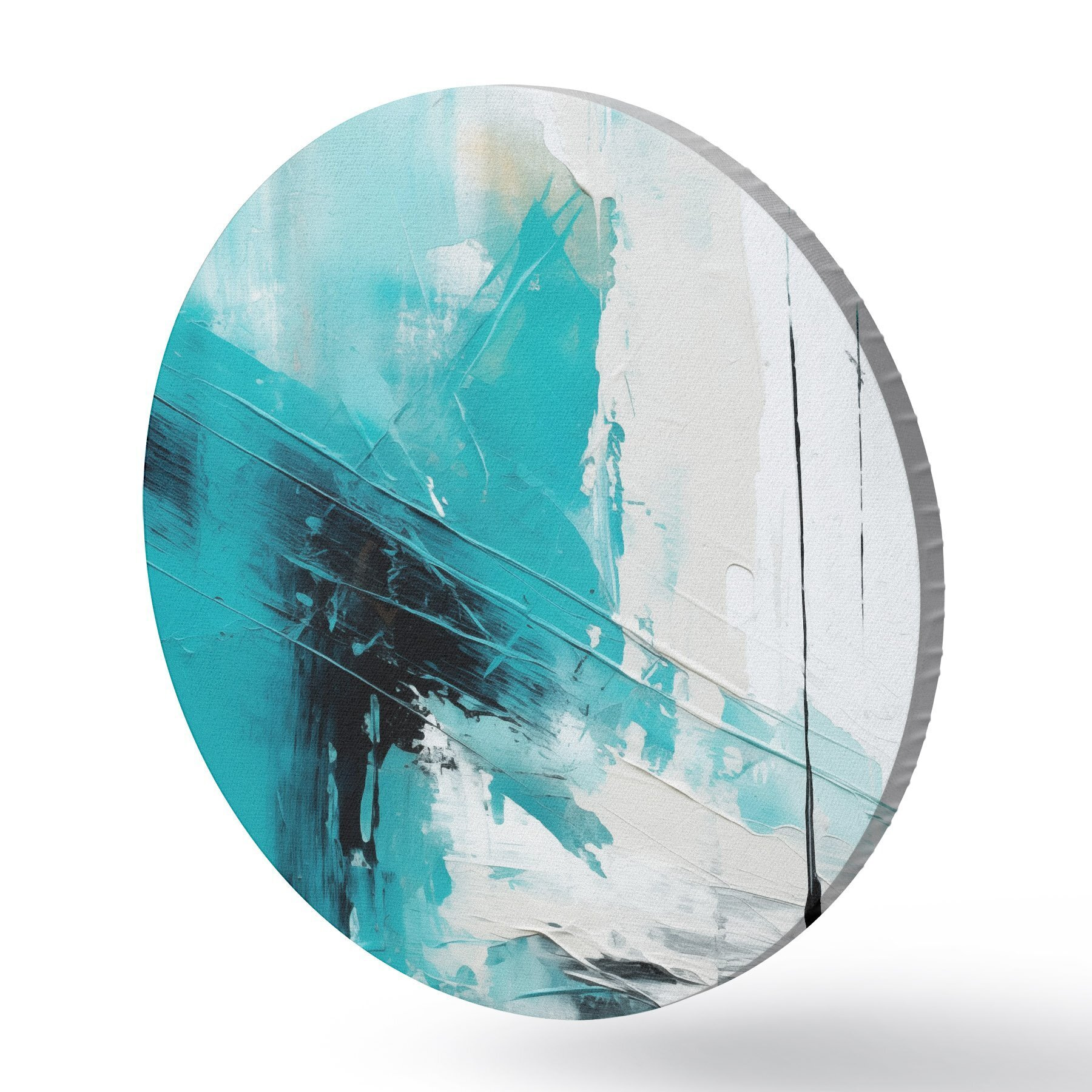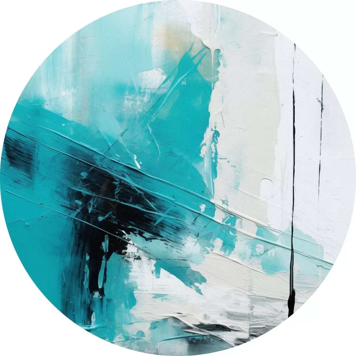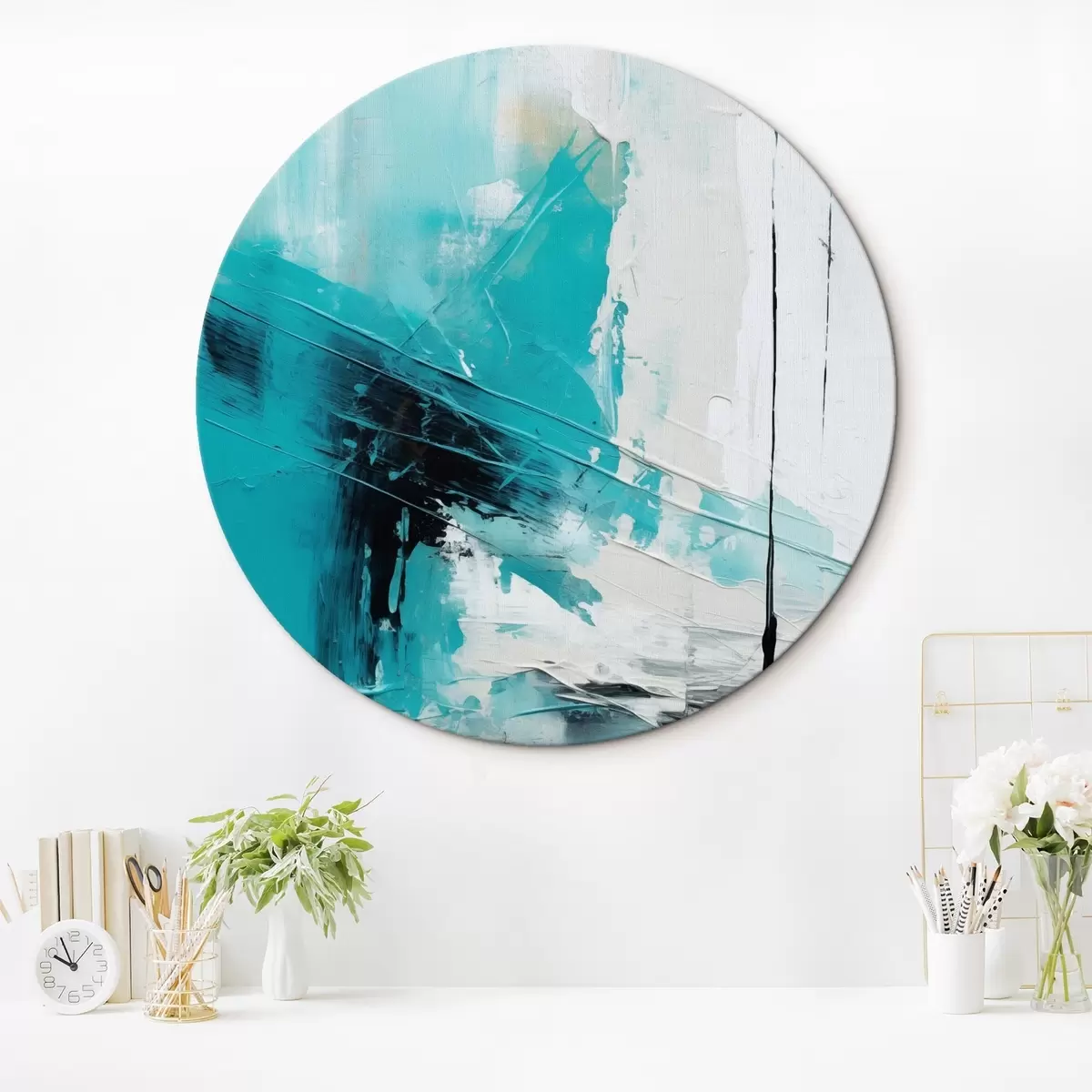 Quadri rotondi Tratti turchesi su sfondo bianco con un trattino nero r46545