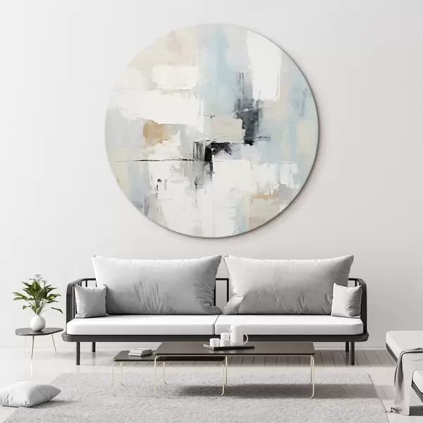 Quadri rotondi Astratto dai toni chiari con accenti neri r46548