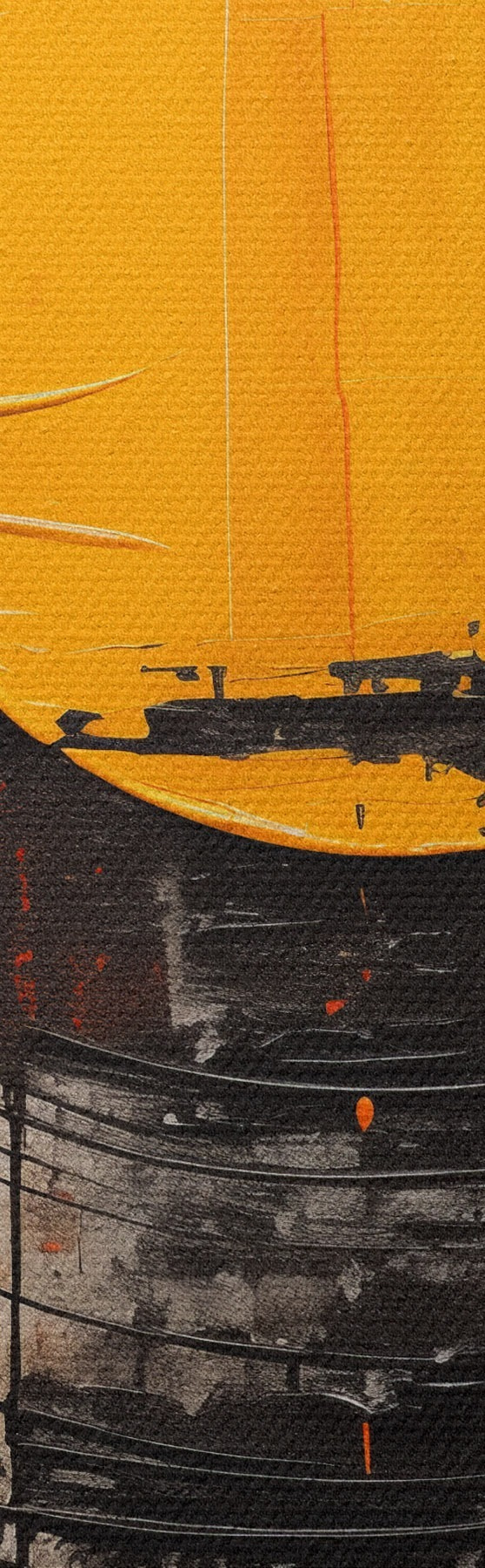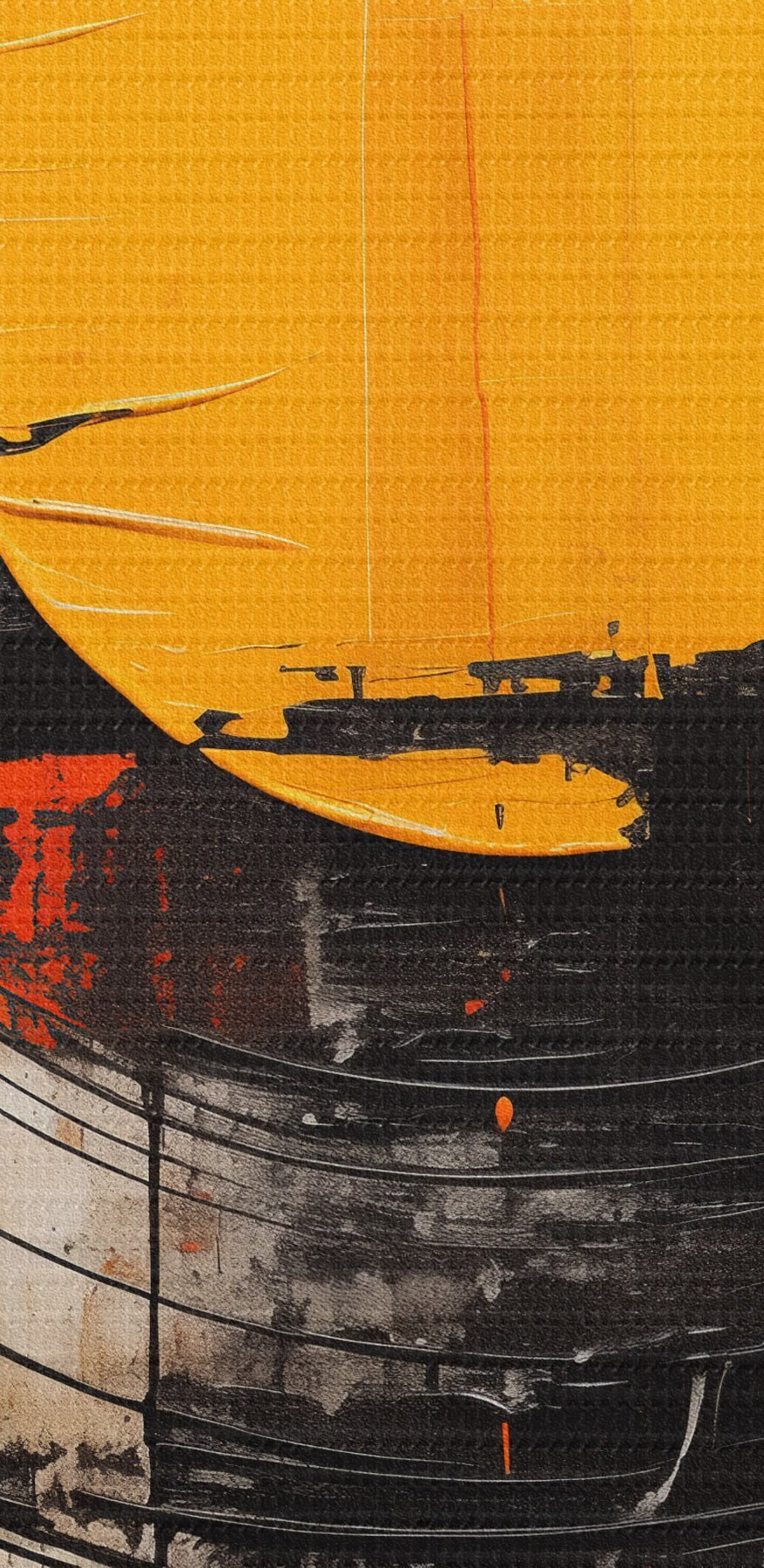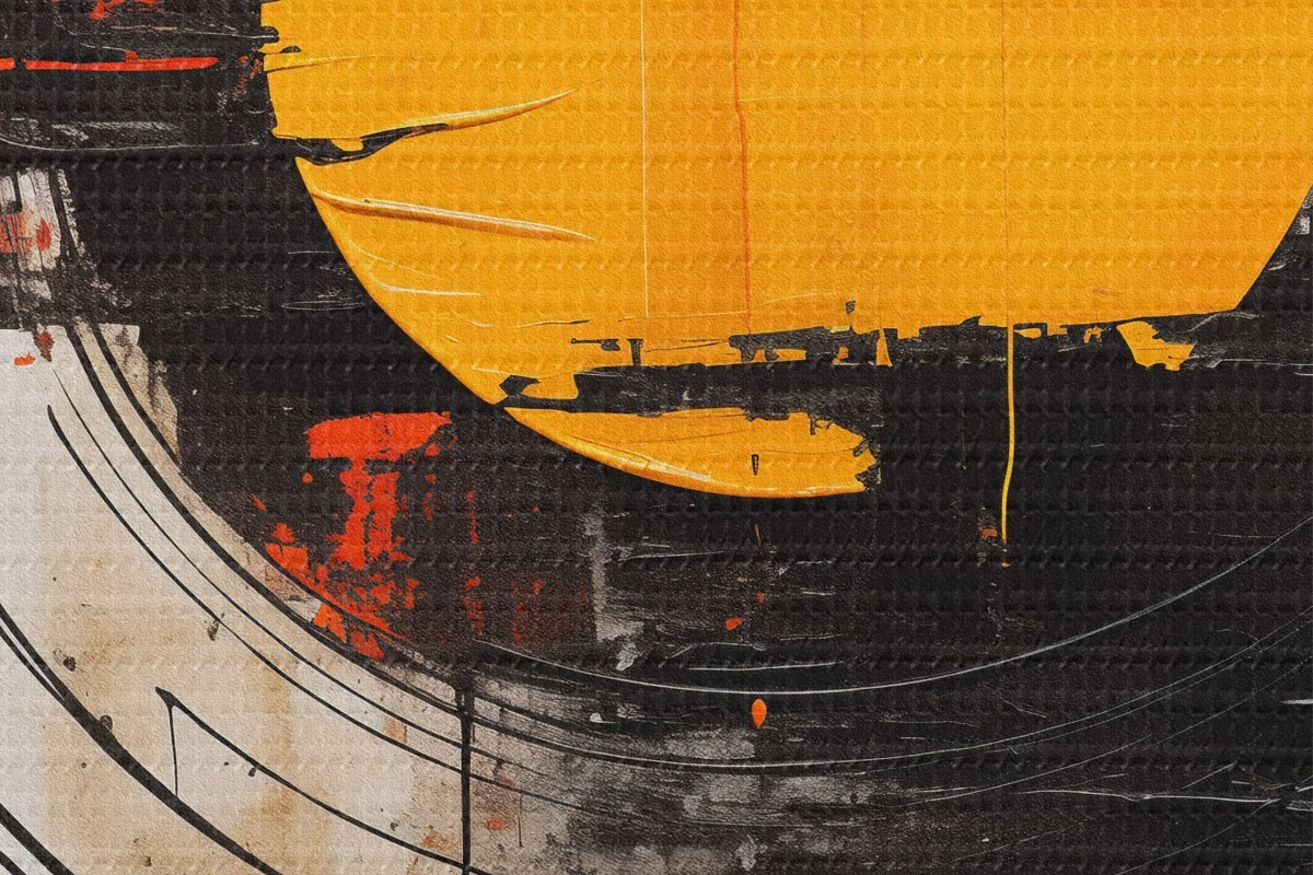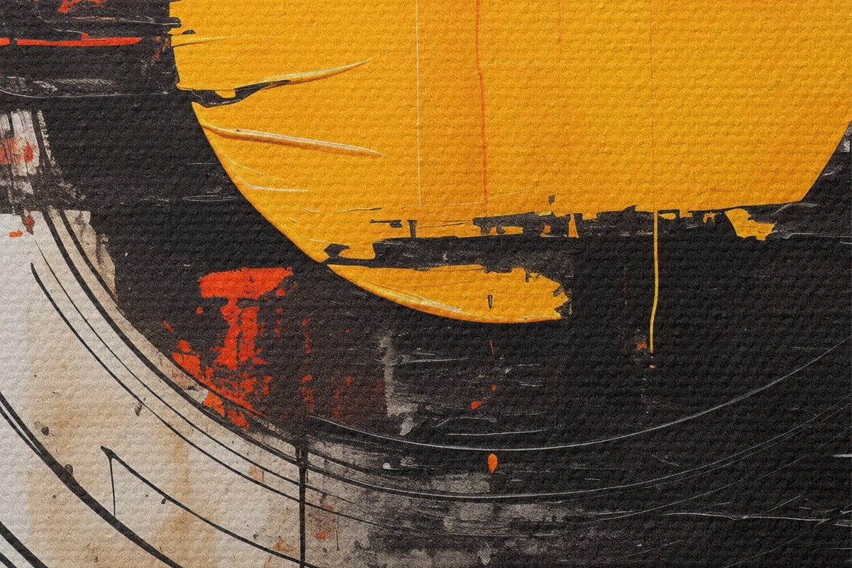 Immagine Disco arancione all'interno di un anello nero, pennellate e schizzi Nr r46550
