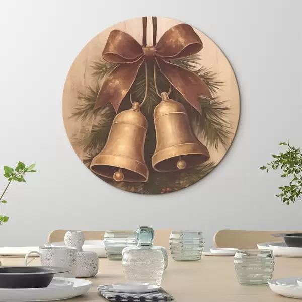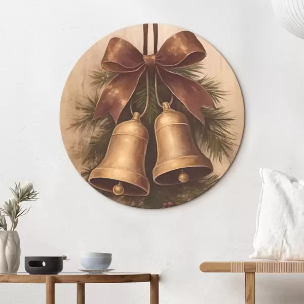 Quadri rotondi Decorazione natalizia vintage con due campanelle e un fiocco r46626