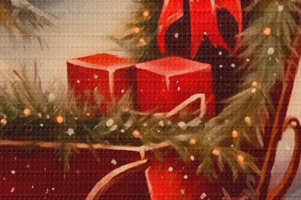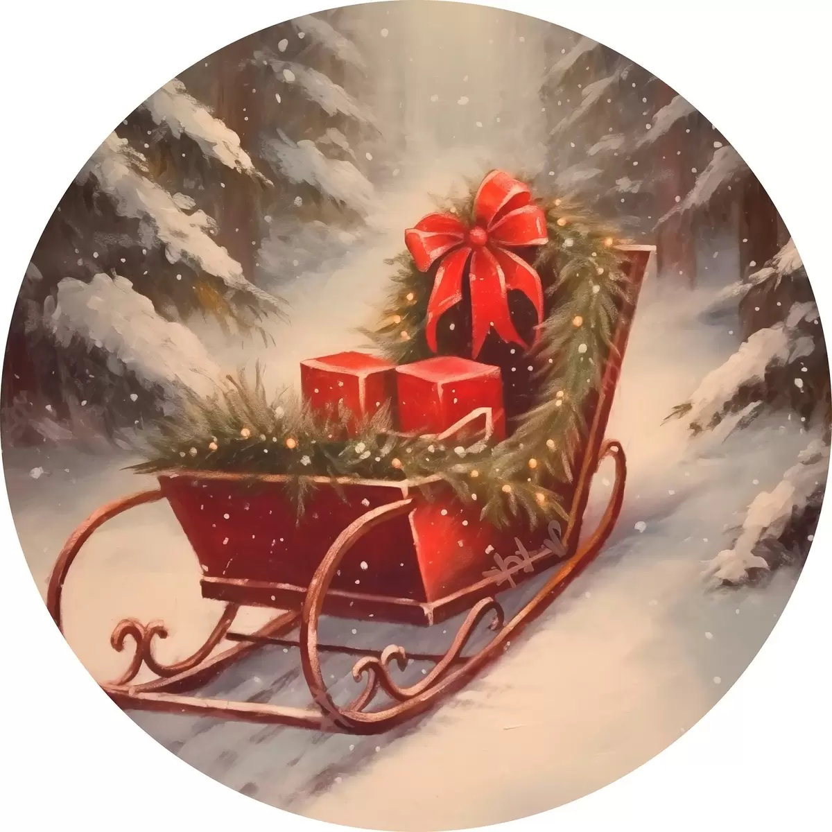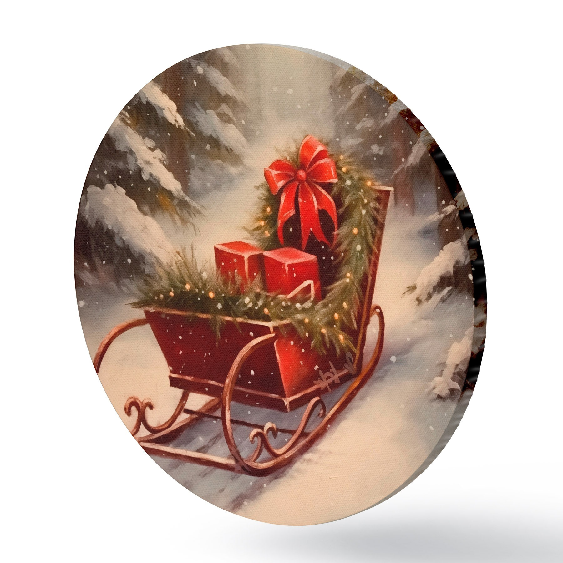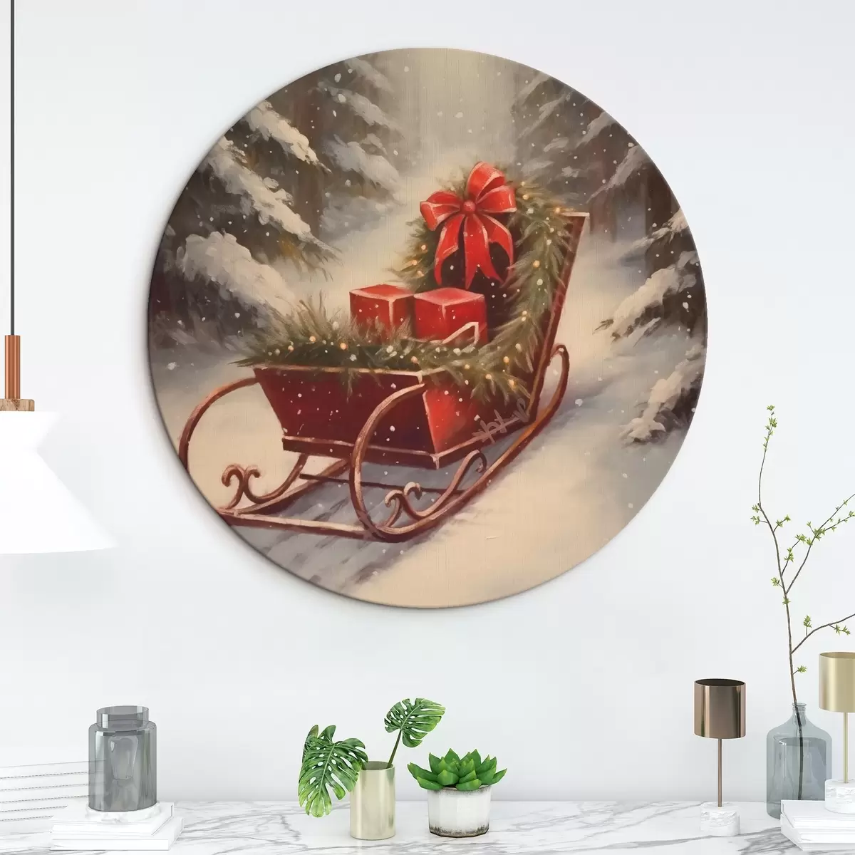 Quadri rotondi Slitta natalizia con regali in una foresta innevata r46630