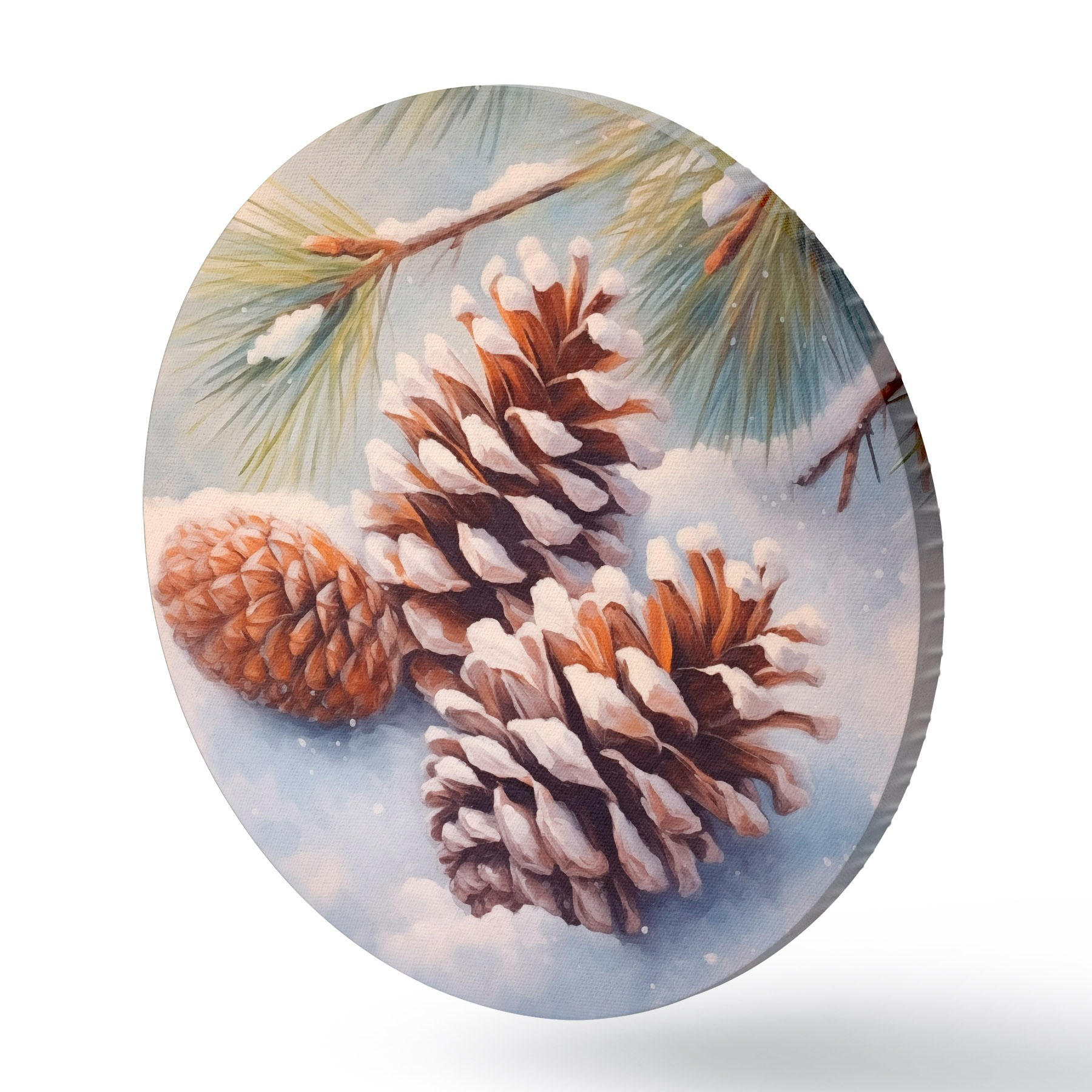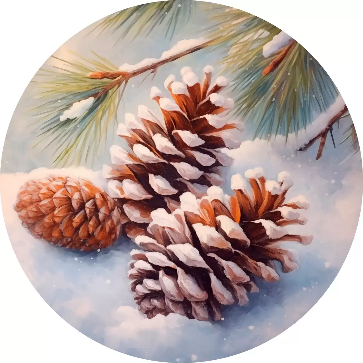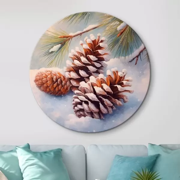 Quadri rotondi Pigne e rami ricoperti di neve r46631