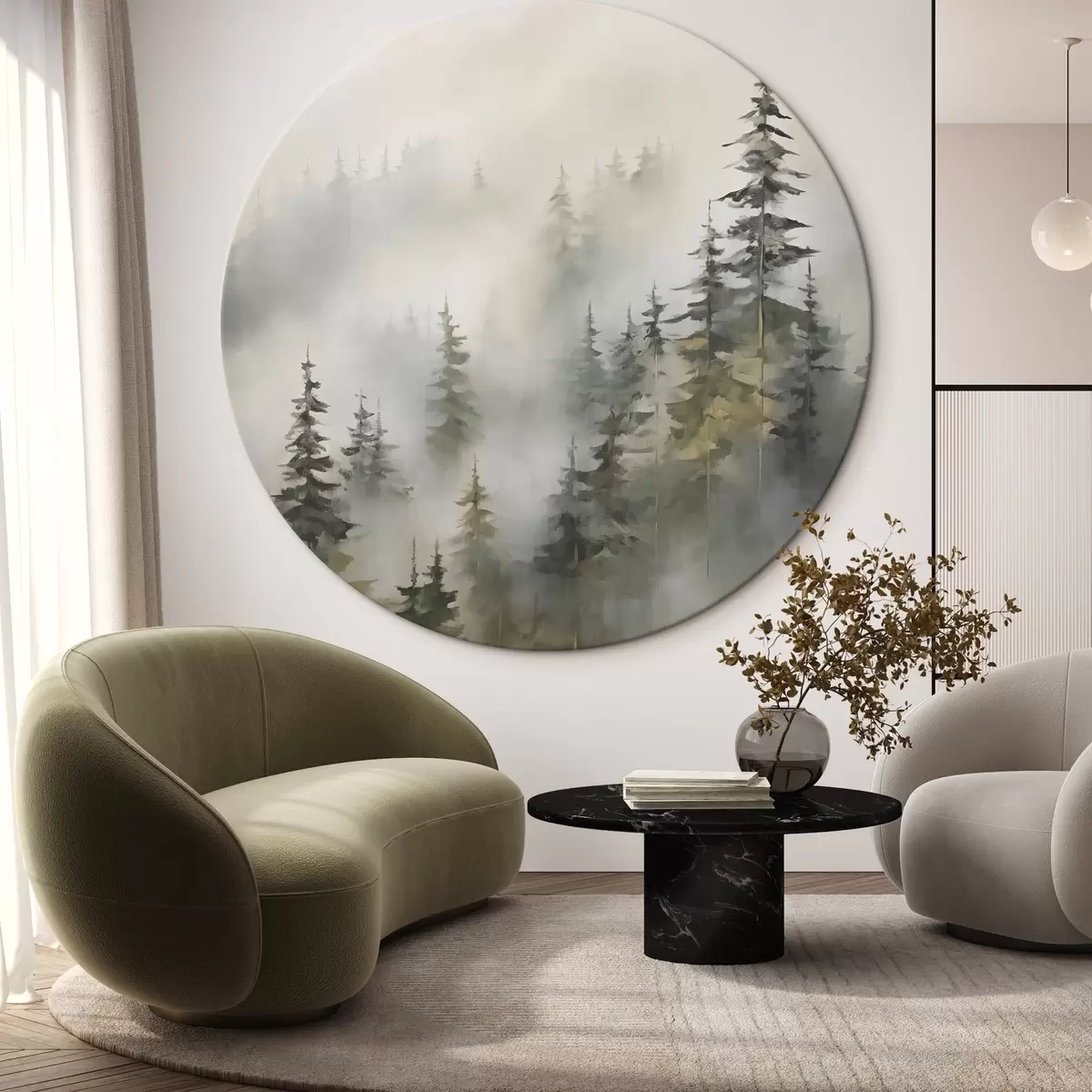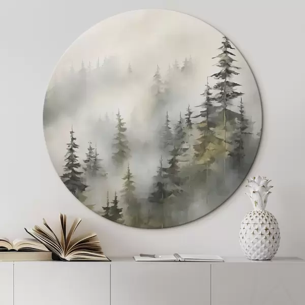 Quadri rotondi Foresta nella nebbia imitazione di un dipinto r46671
