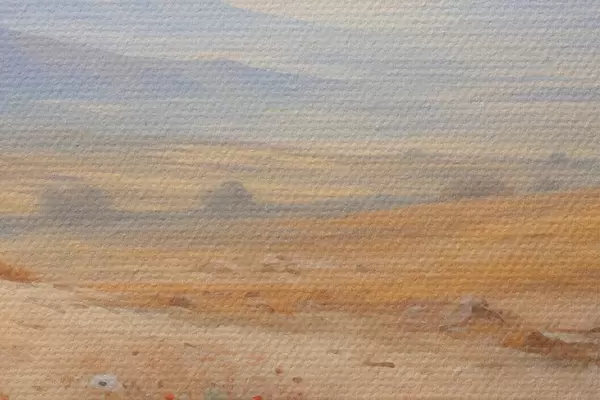 La fine trama dei fili di questa tela ricorda la superficie delle tele degli artisti professionisti.