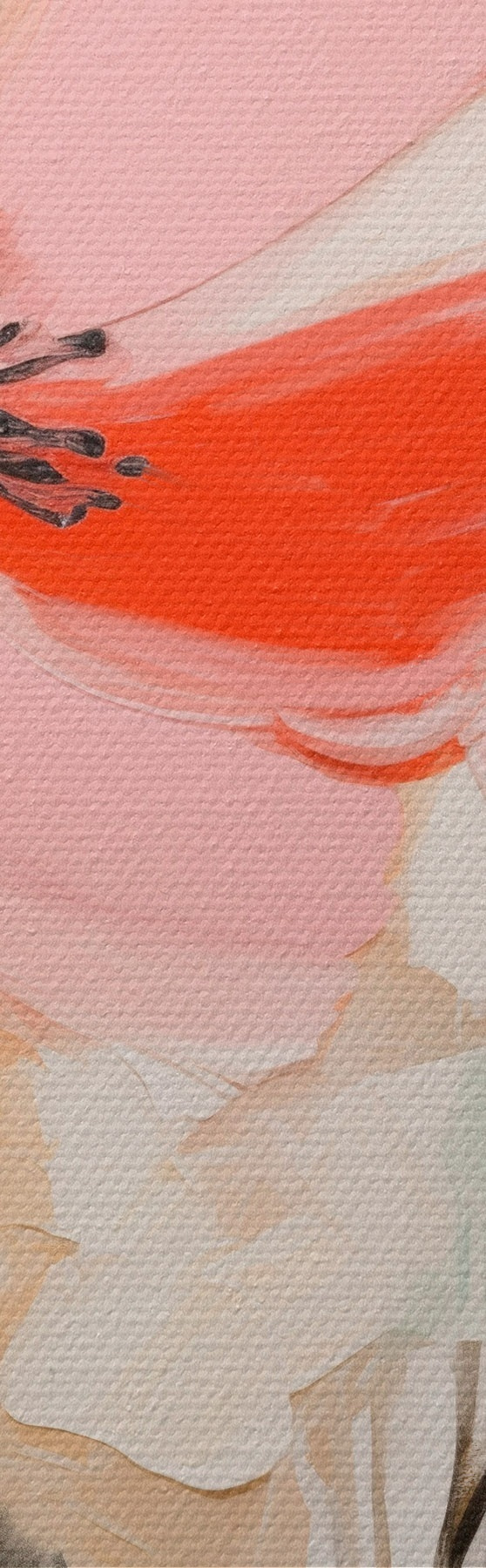 Immagine Fiori rosa e neri con foglie, colori pastello tenui, composizione floreale astratta, arte minimalista Nr r46687