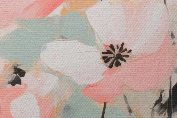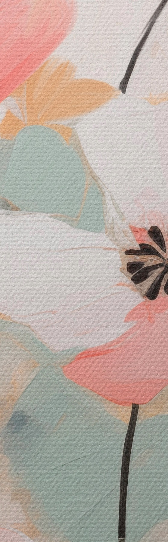 Immagine Fiori rosa e neri con foglie, colori pastello tenui, composizione floreale astratta, arte minimalista Nr r46688