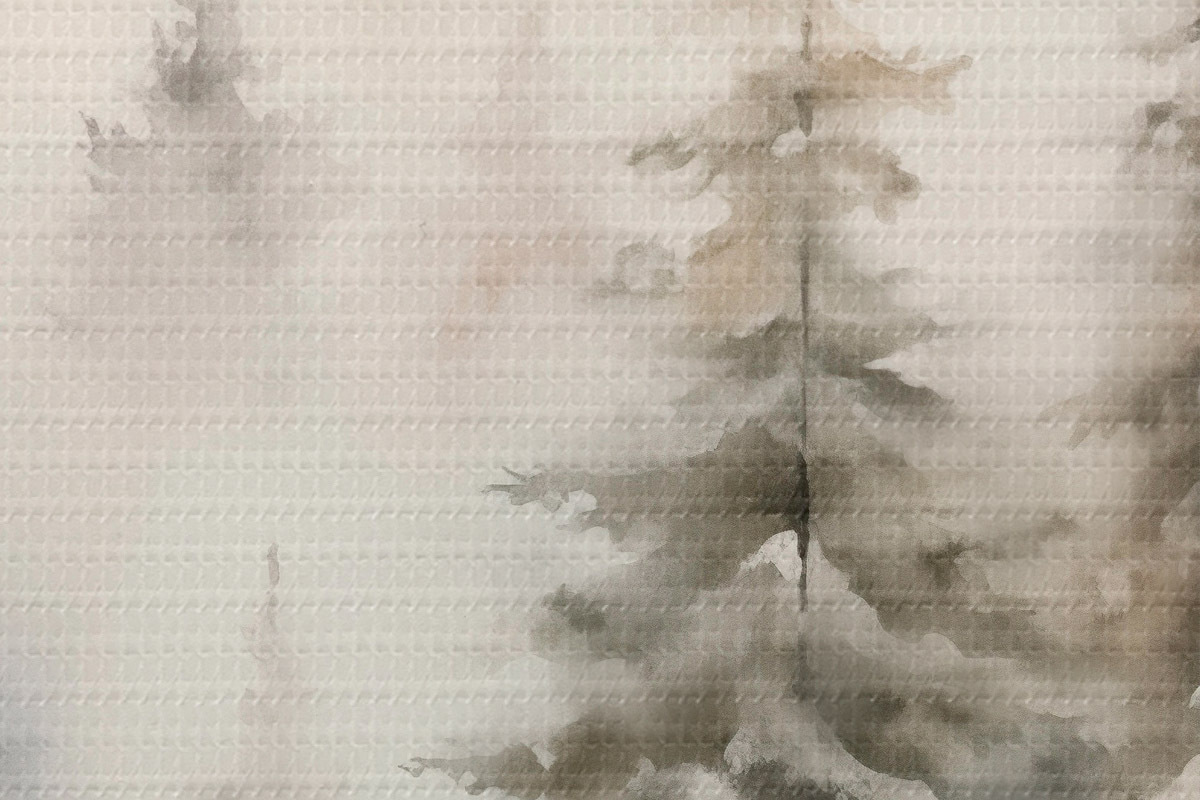 Immagine Alti pini ricoperti di neve, immersi in una foresta avvolta dalla nebbia, una scena invernale morbida e ovattata. Nr r46701