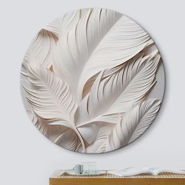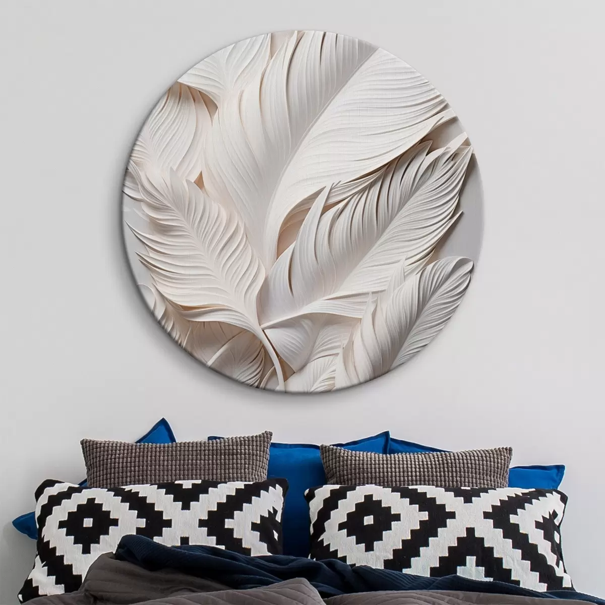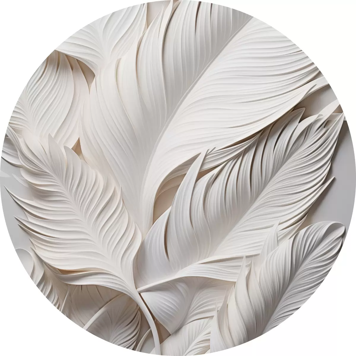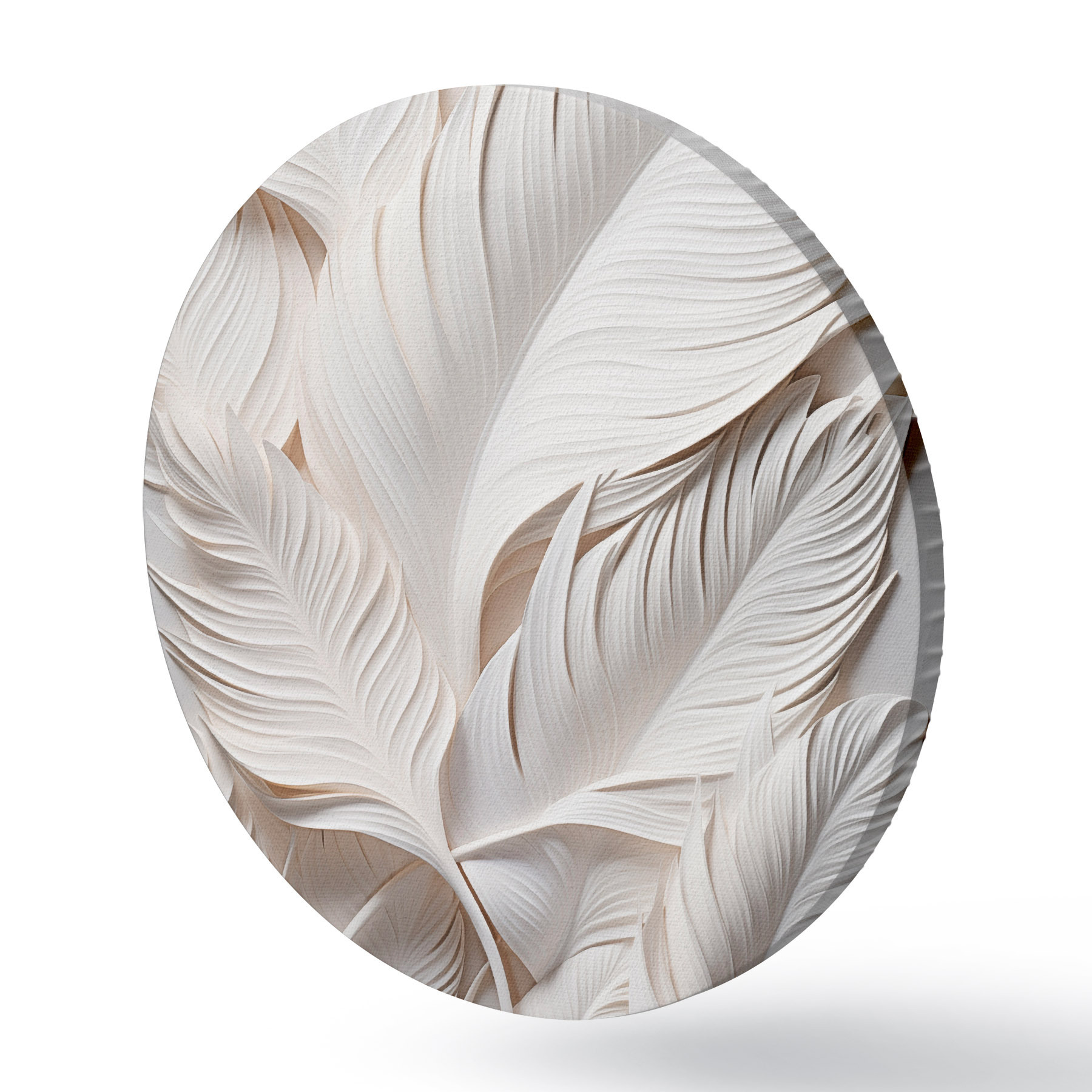 Quadri rotondi Foglie bianche con dettagli intricati, che creano un effetto strutturato e stratificato, arte minimalista r46706