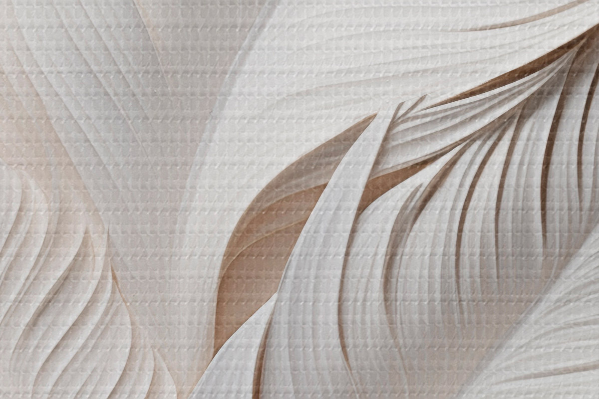 Immagine Foglie bianche con dettagli intricati, che creano un effetto strutturato e stratificato, arte minimalista Nr r46706