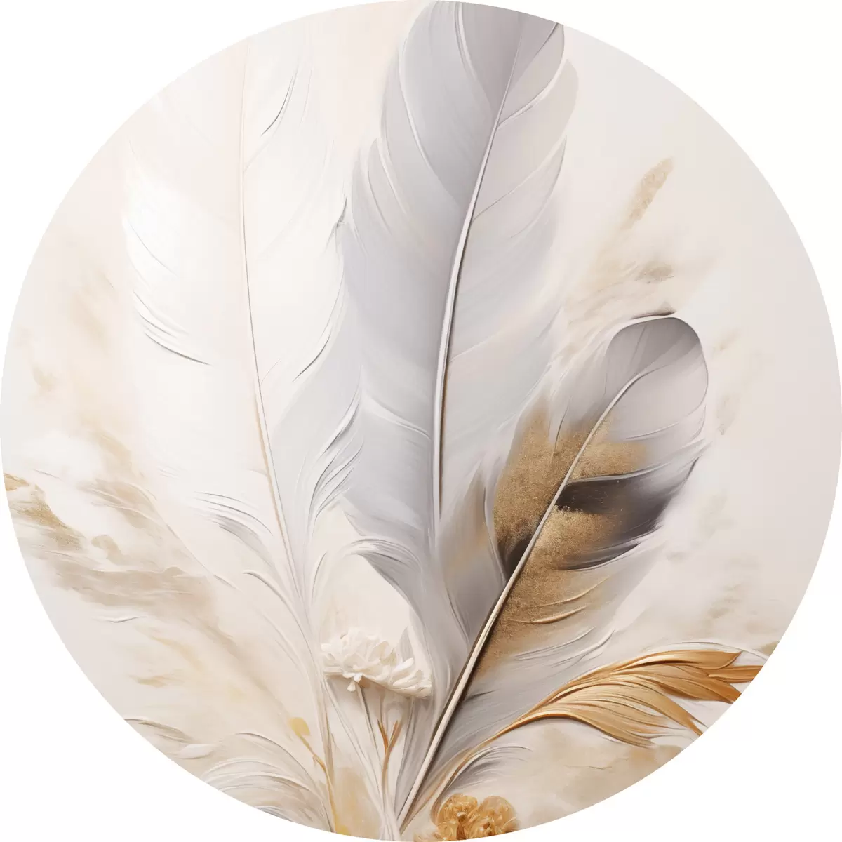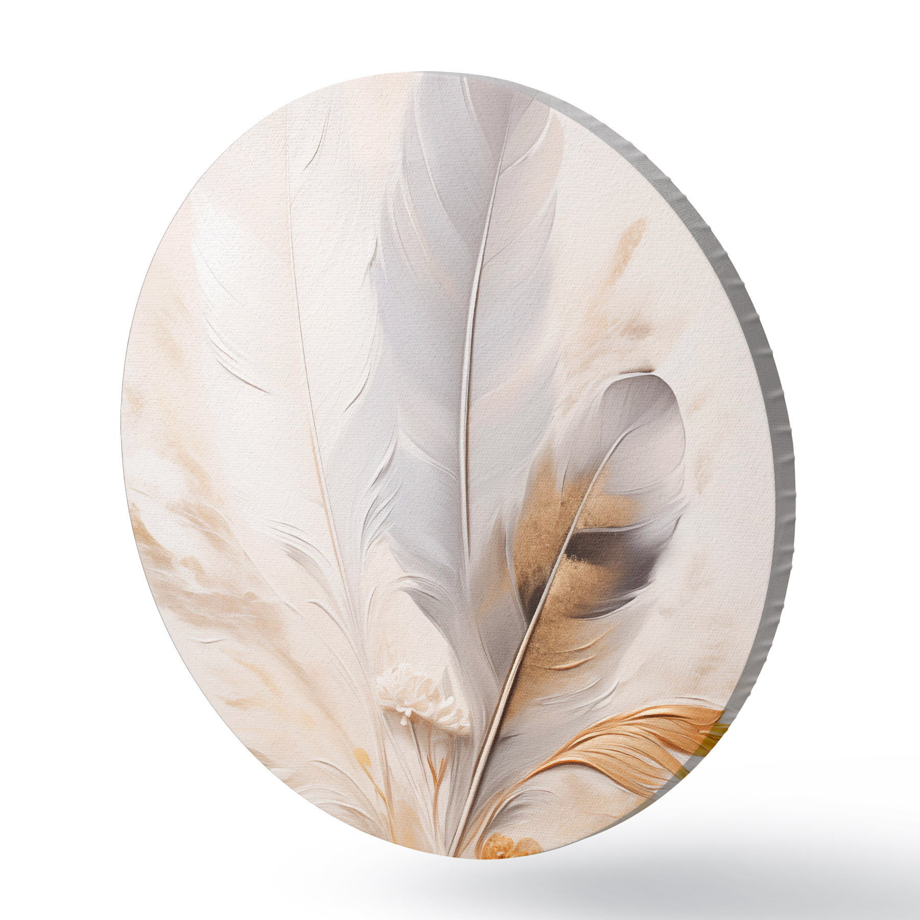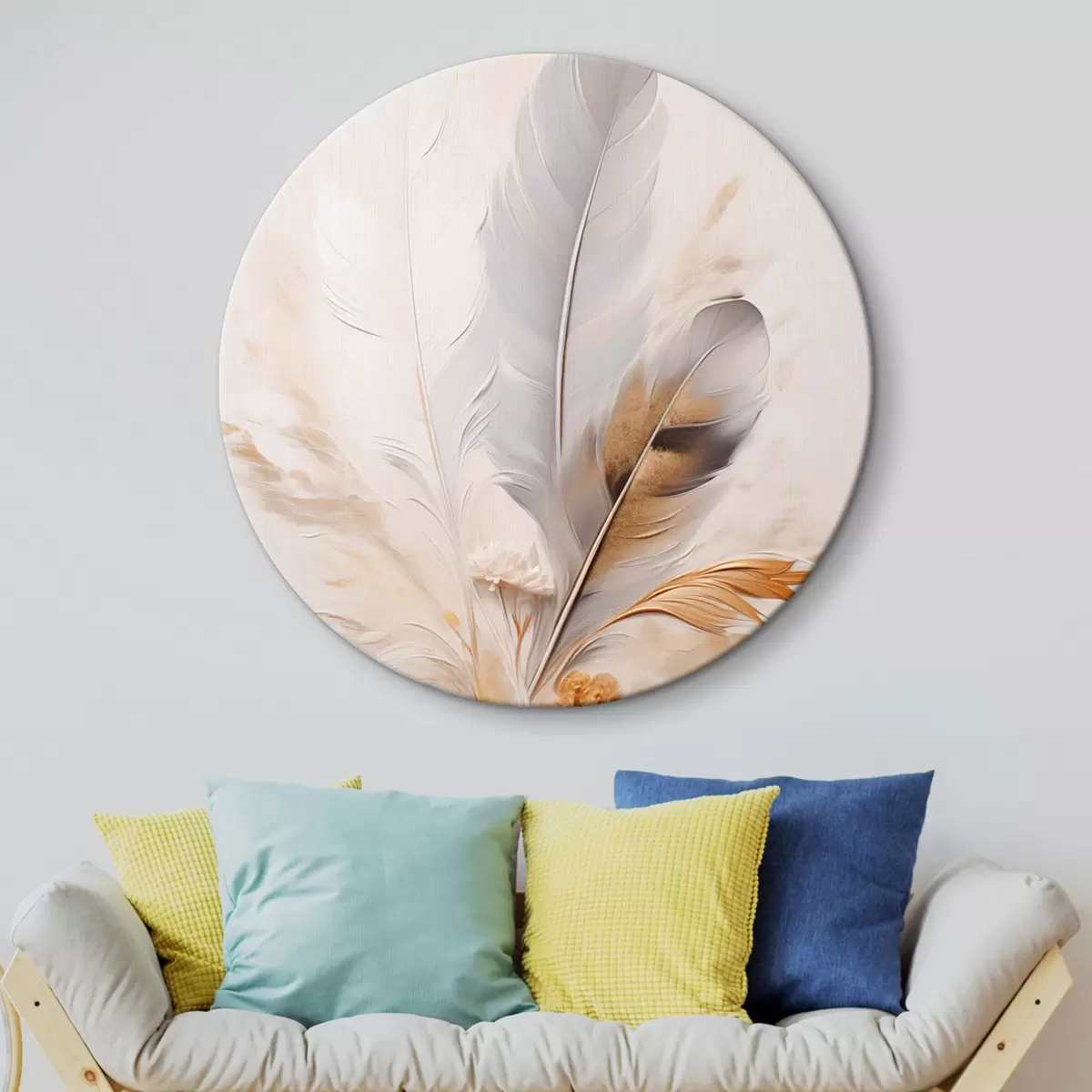 Quadri rotondi Piume astratte, circondate da pennacchi beige e marroni, morbide e delicate, su uno sfondo beige chiaro. r46712