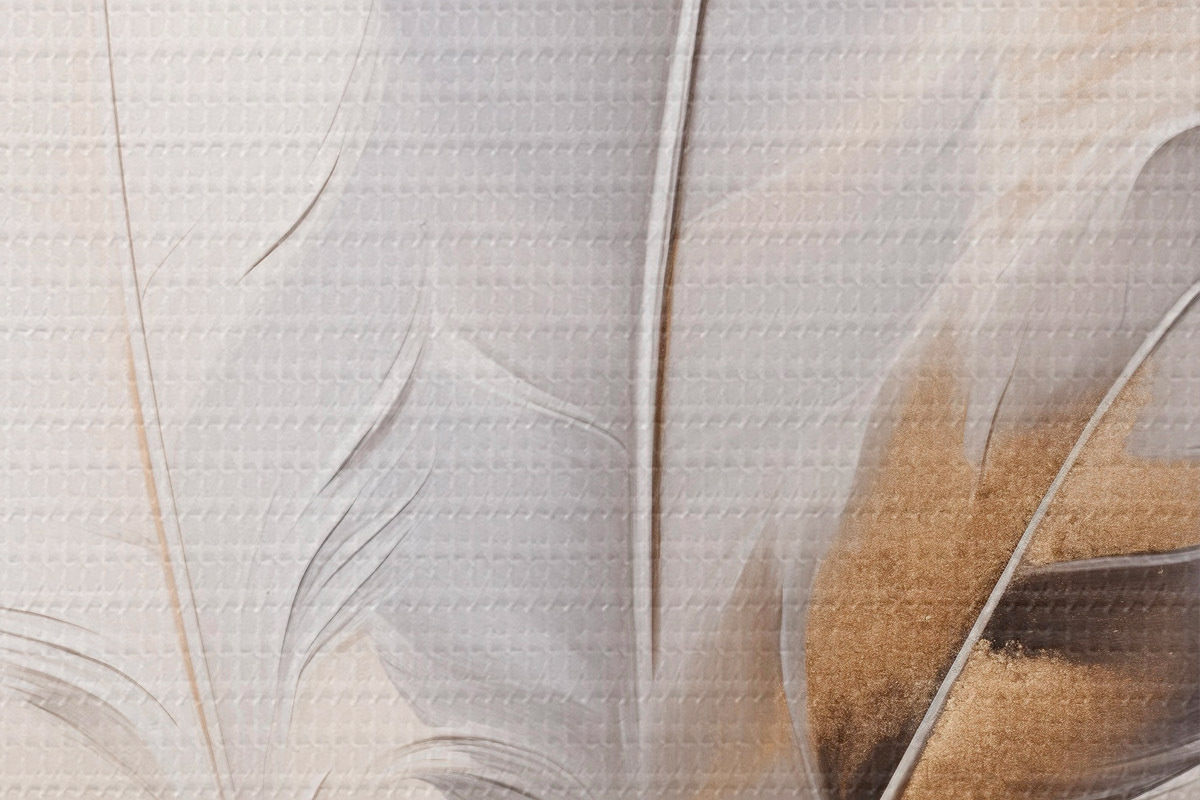Immagine Piume astratte, circondate da pennacchi beige e marroni, morbide e delicate, su uno sfondo beige chiaro. Nr r46712