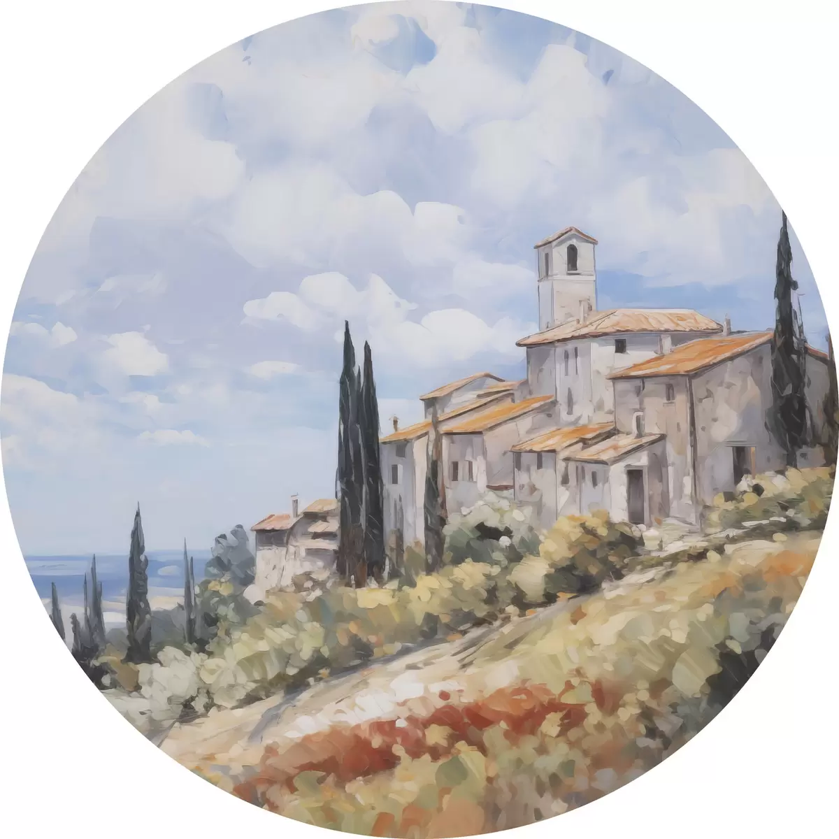 Quadri rotondi Imitazione di un paesaggio rurale nella pittura r46716