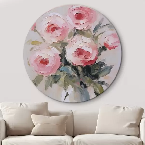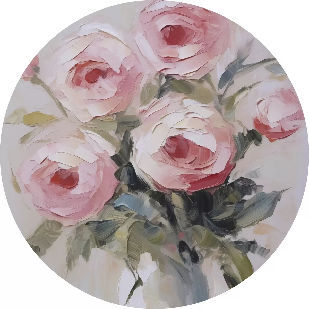 Quadri rotondi Rosa in un vaso, dipinto imitazione r46742